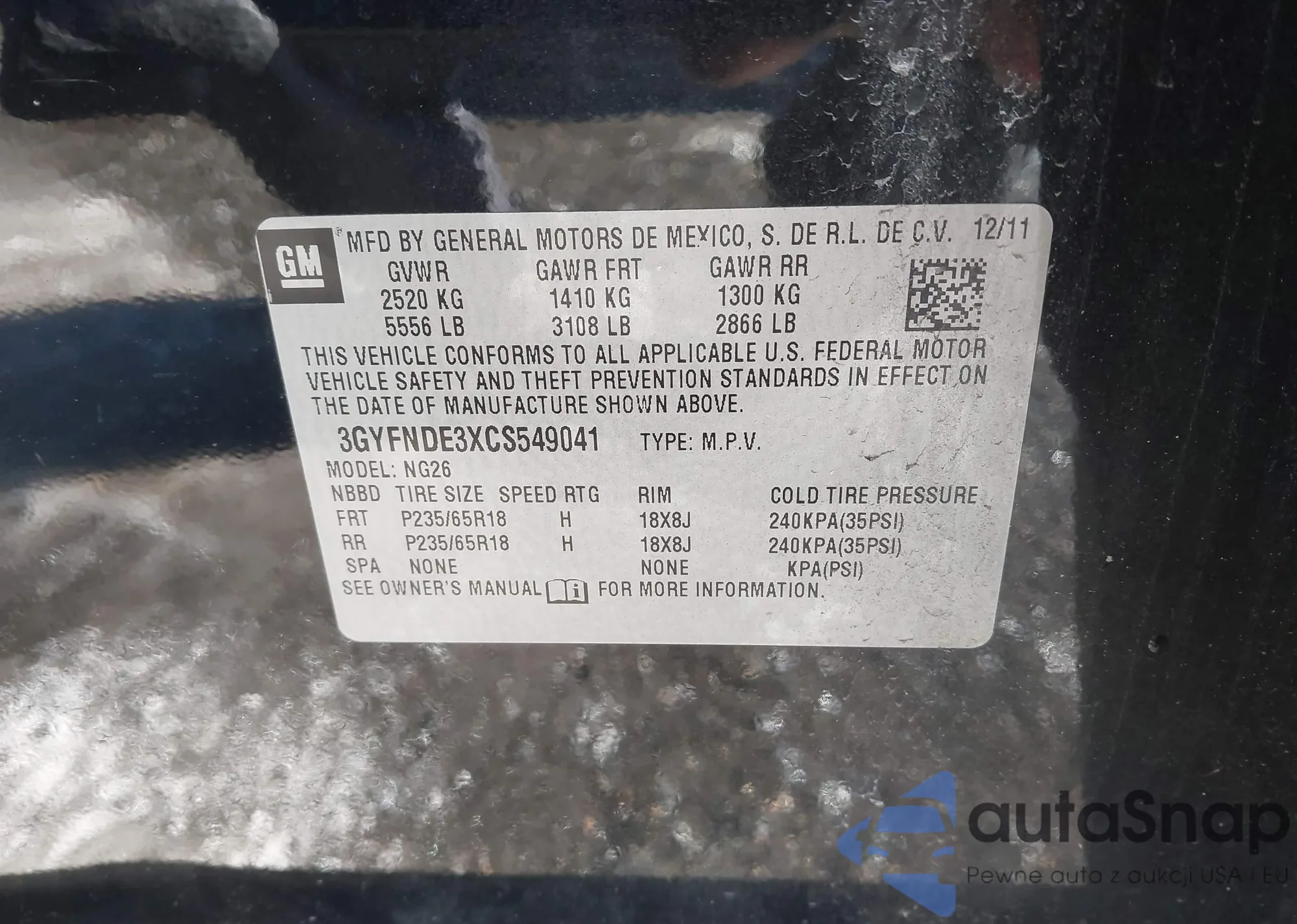• VIN 3GYFNDE3XCS549041