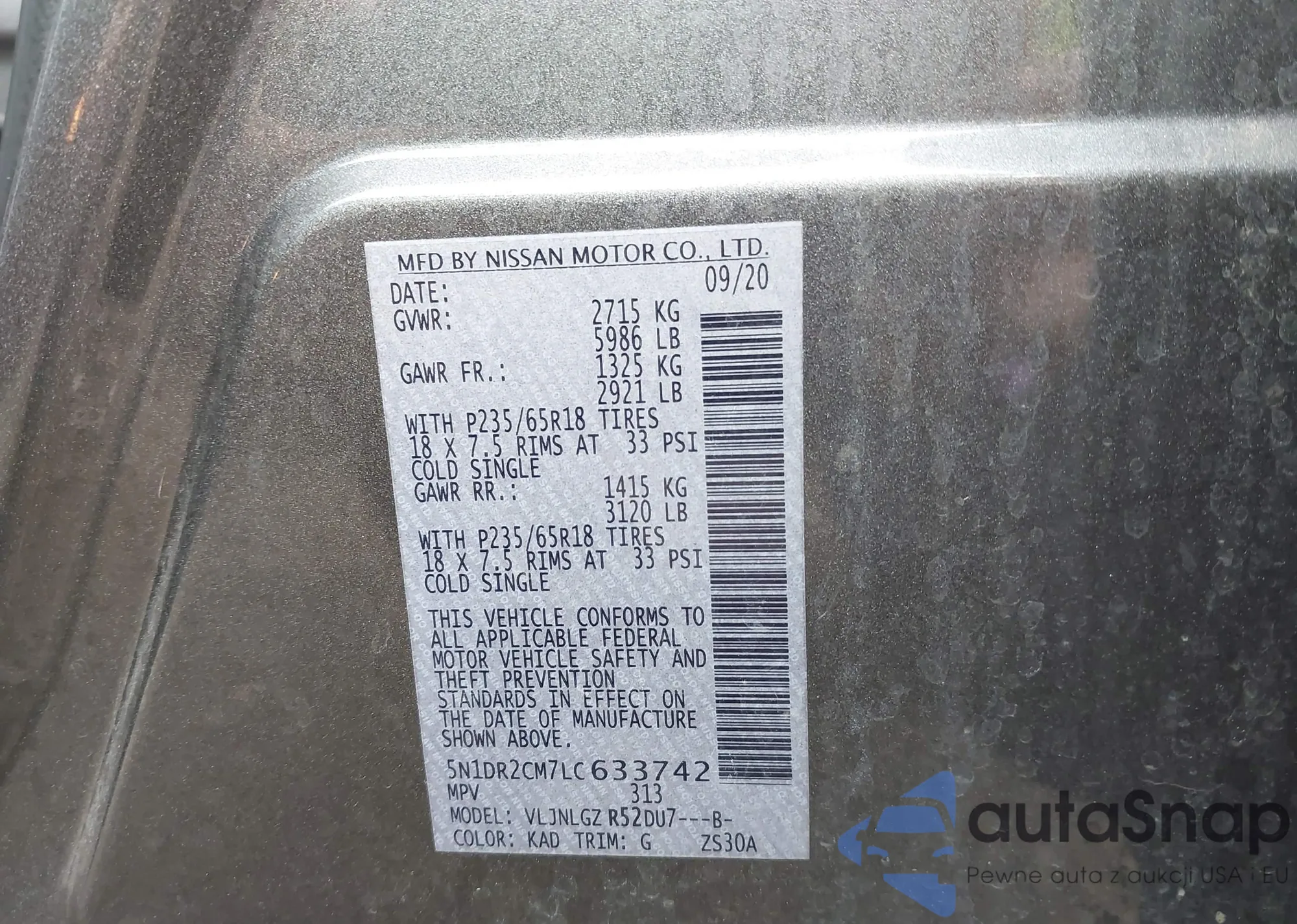 LOT: 43263315 VIN: 5N1DR2CM7LC633742