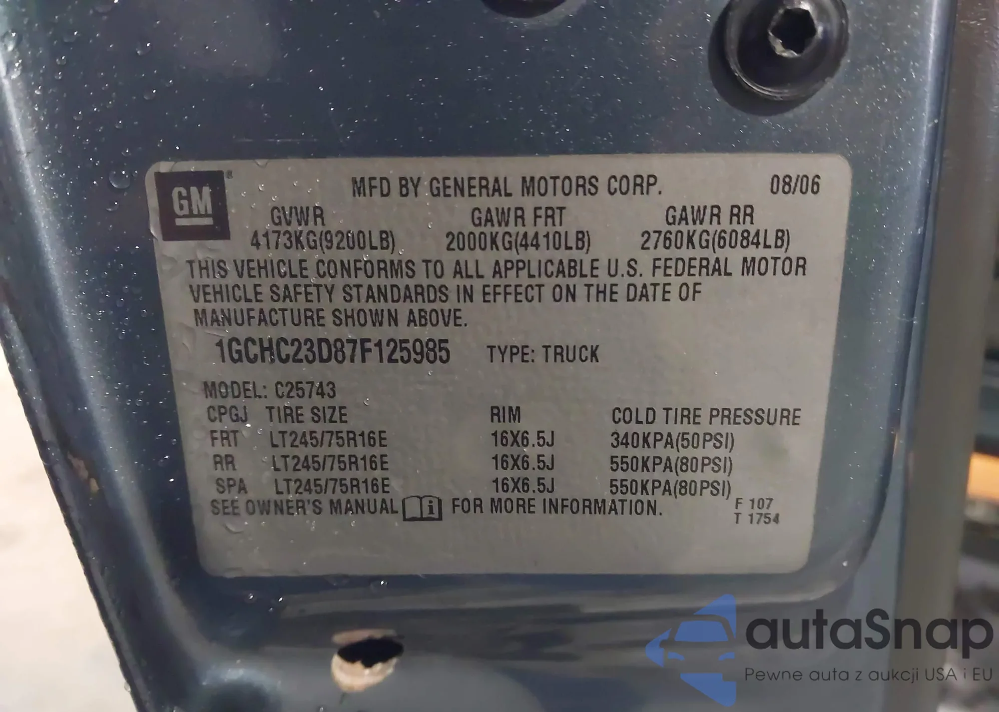 • VIN 1GCHC23D87F125985