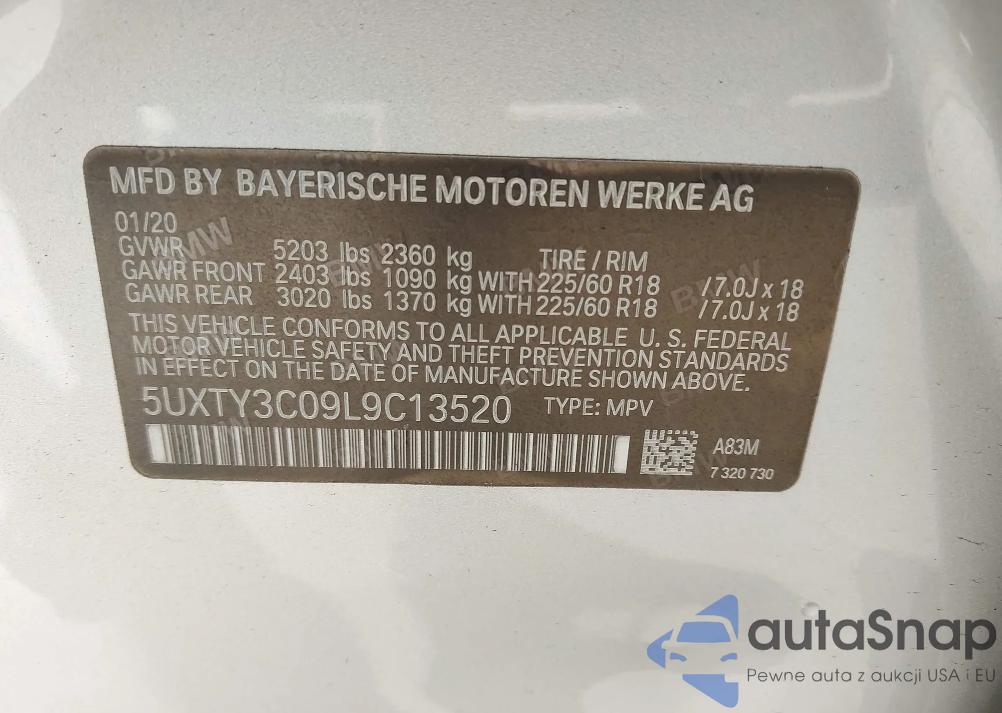LOT: 43881854 VIN: 5UXTY3C09L9C13520