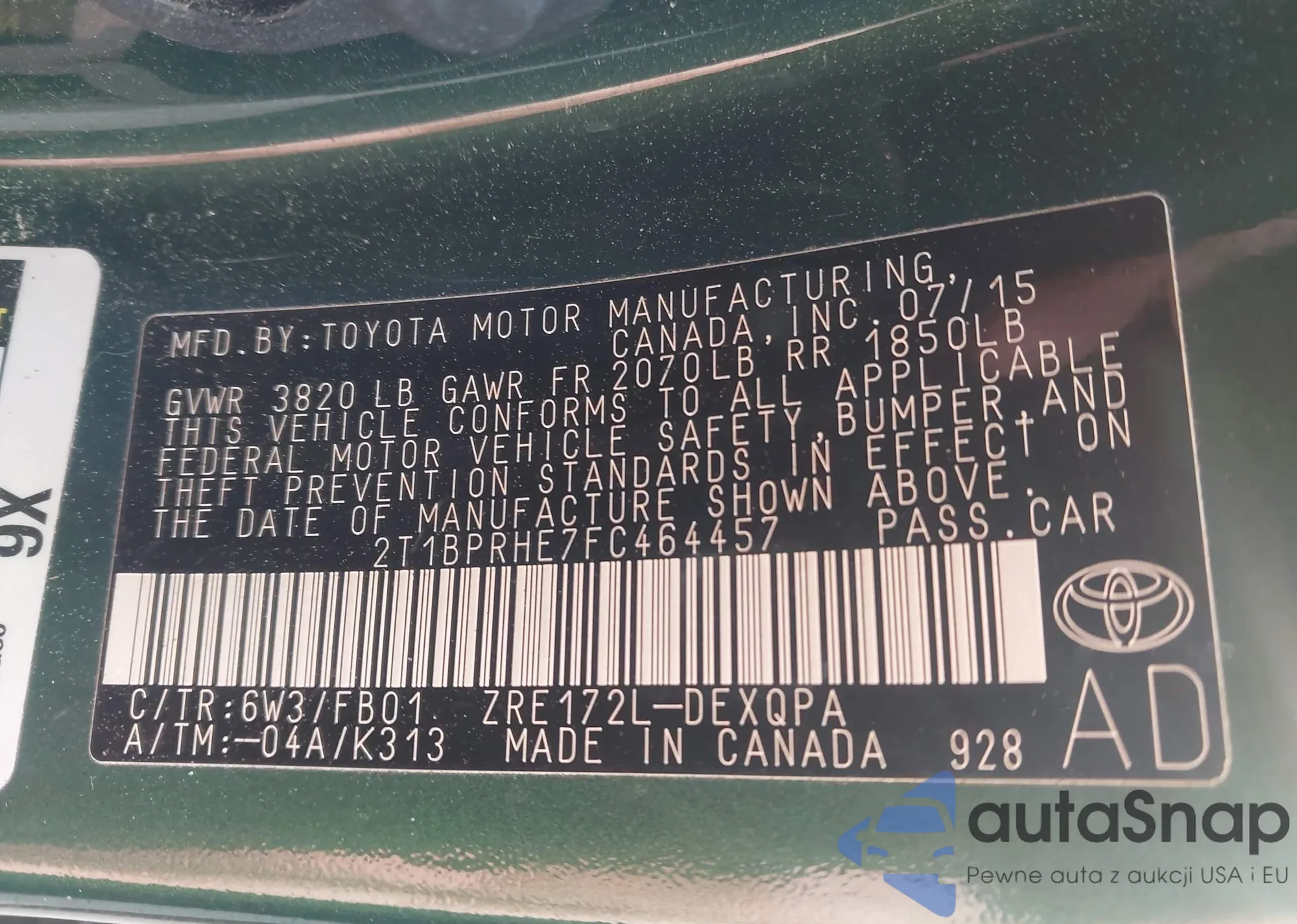 • VIN 2T1BPRHE7FC464457
