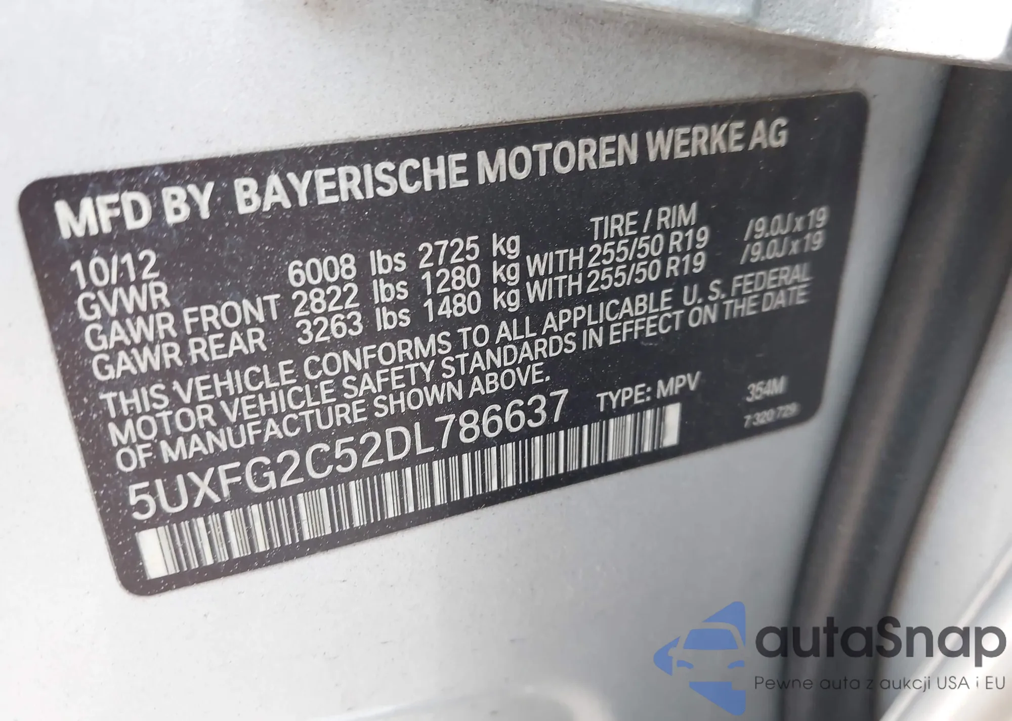 • VIN 5UXFG2C52DL786637