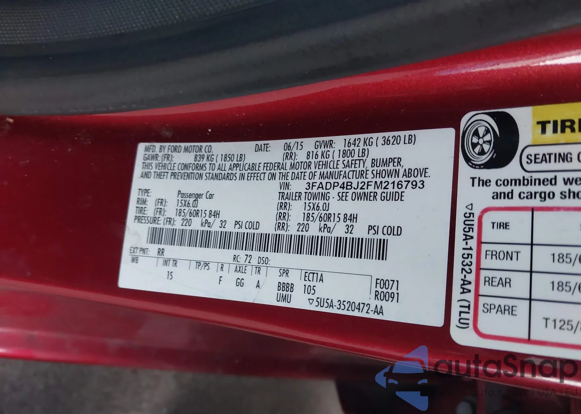 LOT: 43918010 VIN: 3FADP4BJ2FM216793