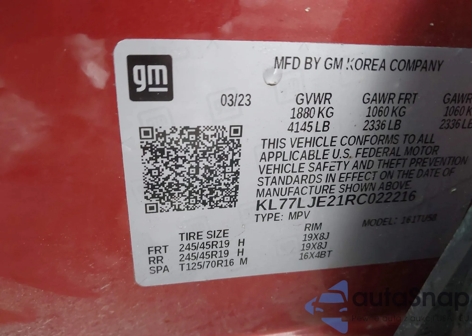 • VIN KL77LJE21RC022216