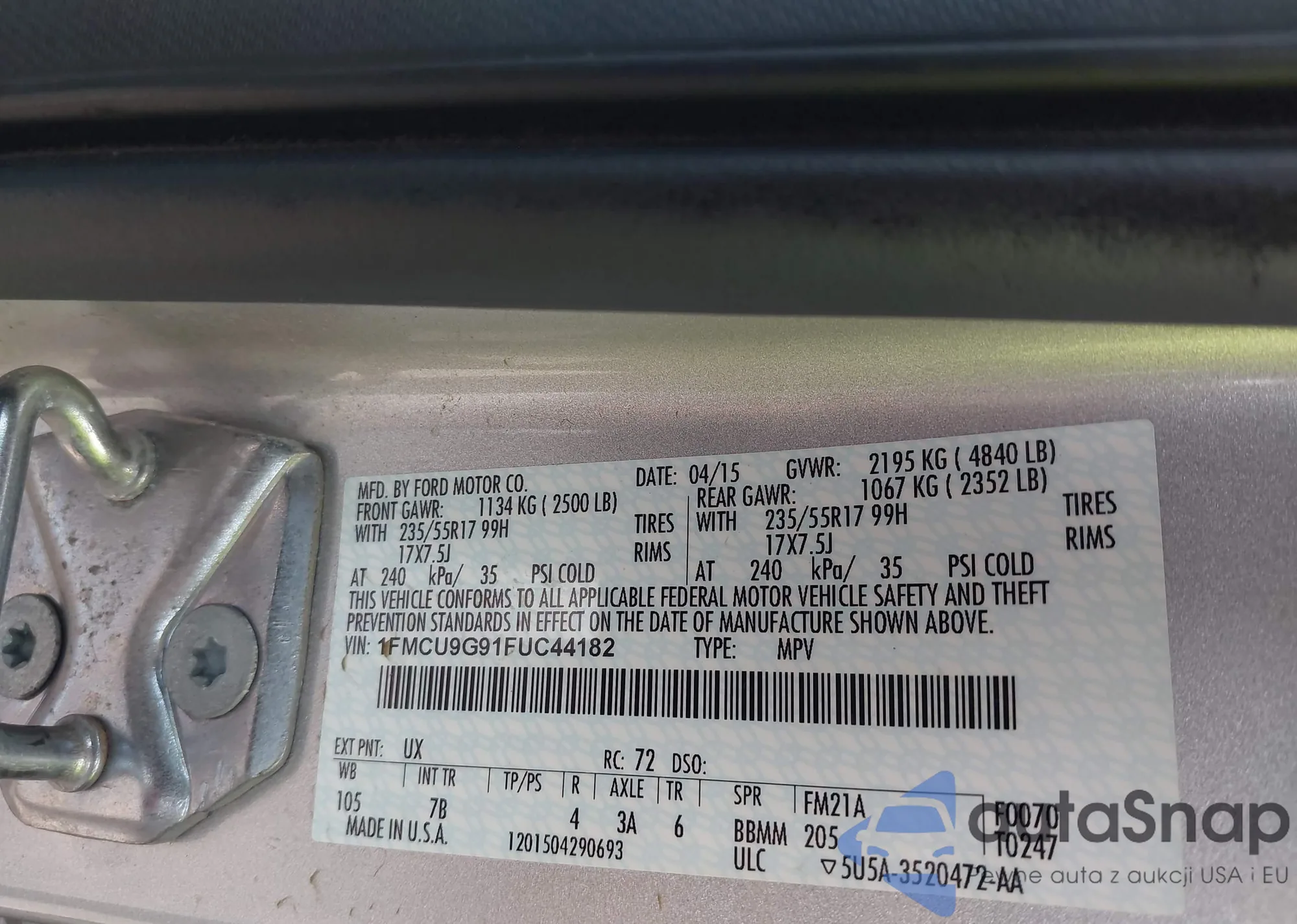 LOT: 43766348 VIN: 1FMCU9G91FUC44182