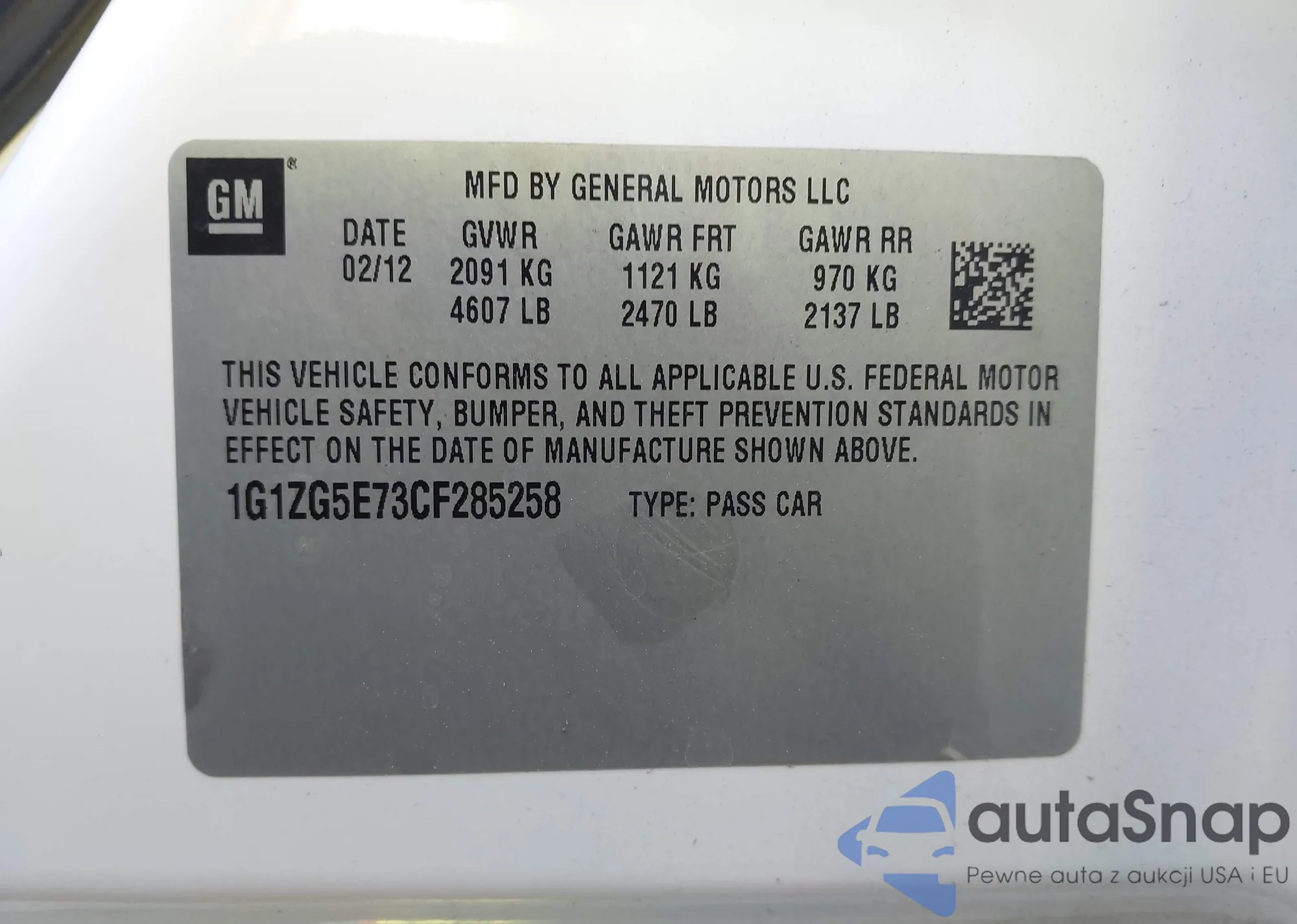 • VIN 1G1ZG5E73CF285258