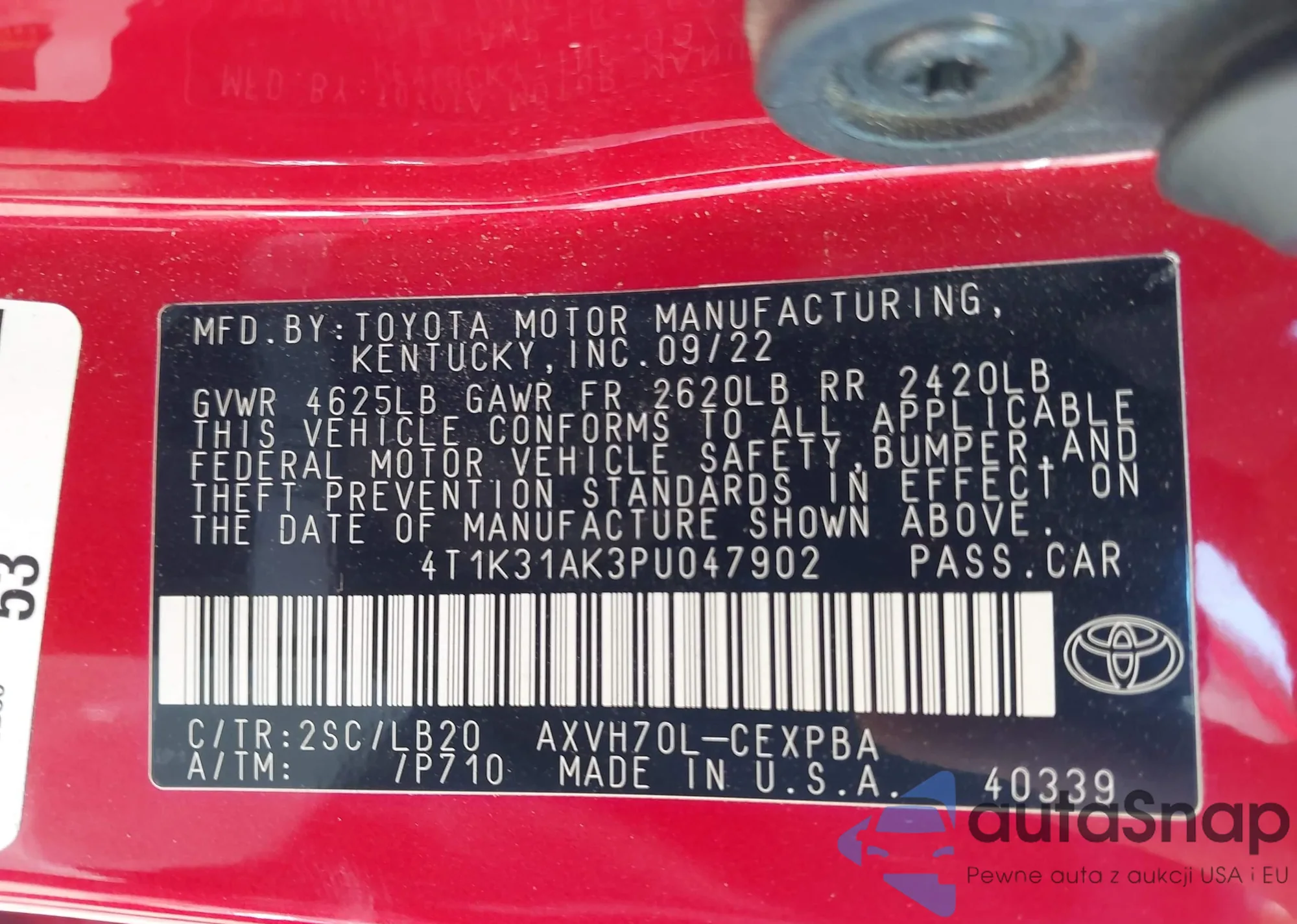 LOT: 43390425 VIN: 4T1DAACK8SU046491