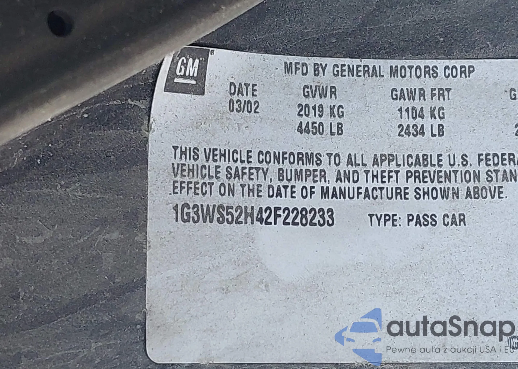 LOT: 43233770 VIN: 1G3WS52H42F228233