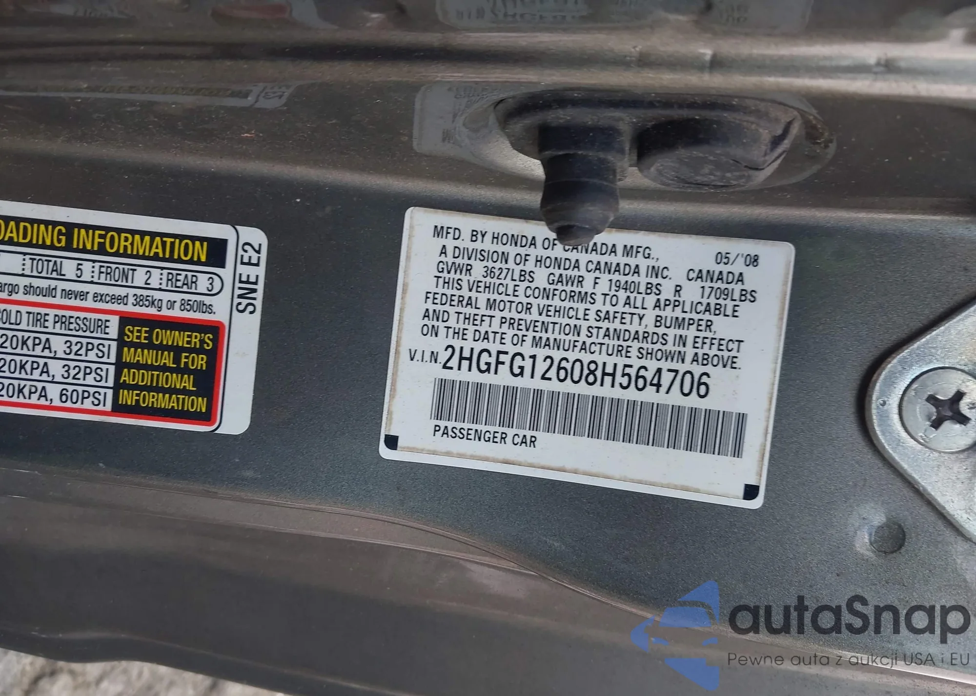 LOT: 43591231 VIN: 2HGFG12678H570454