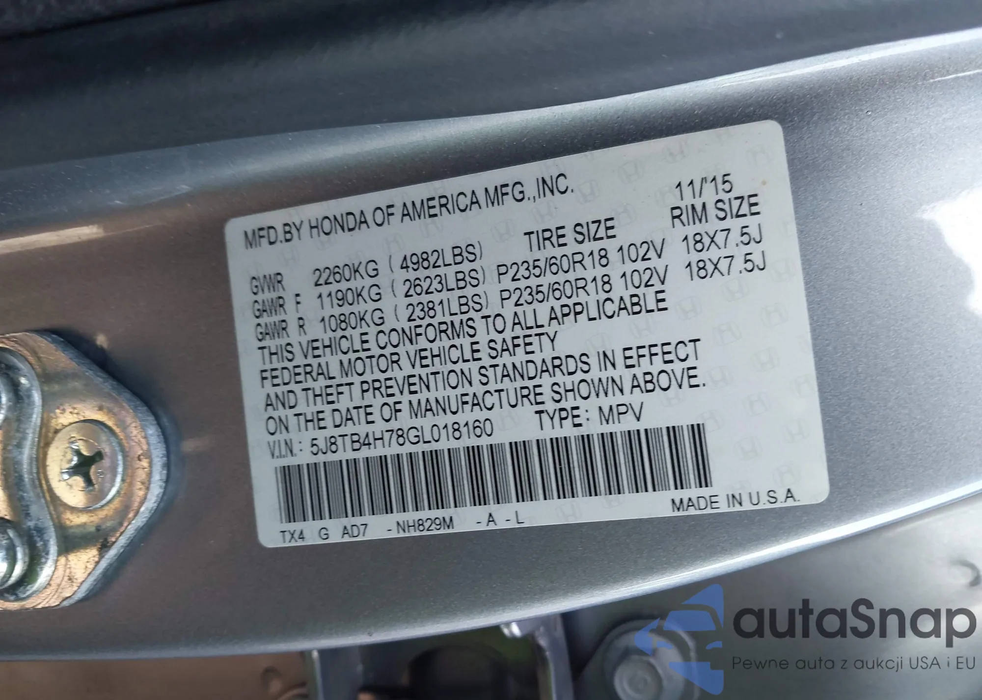 • VIN 5J8TB4H78GL018160