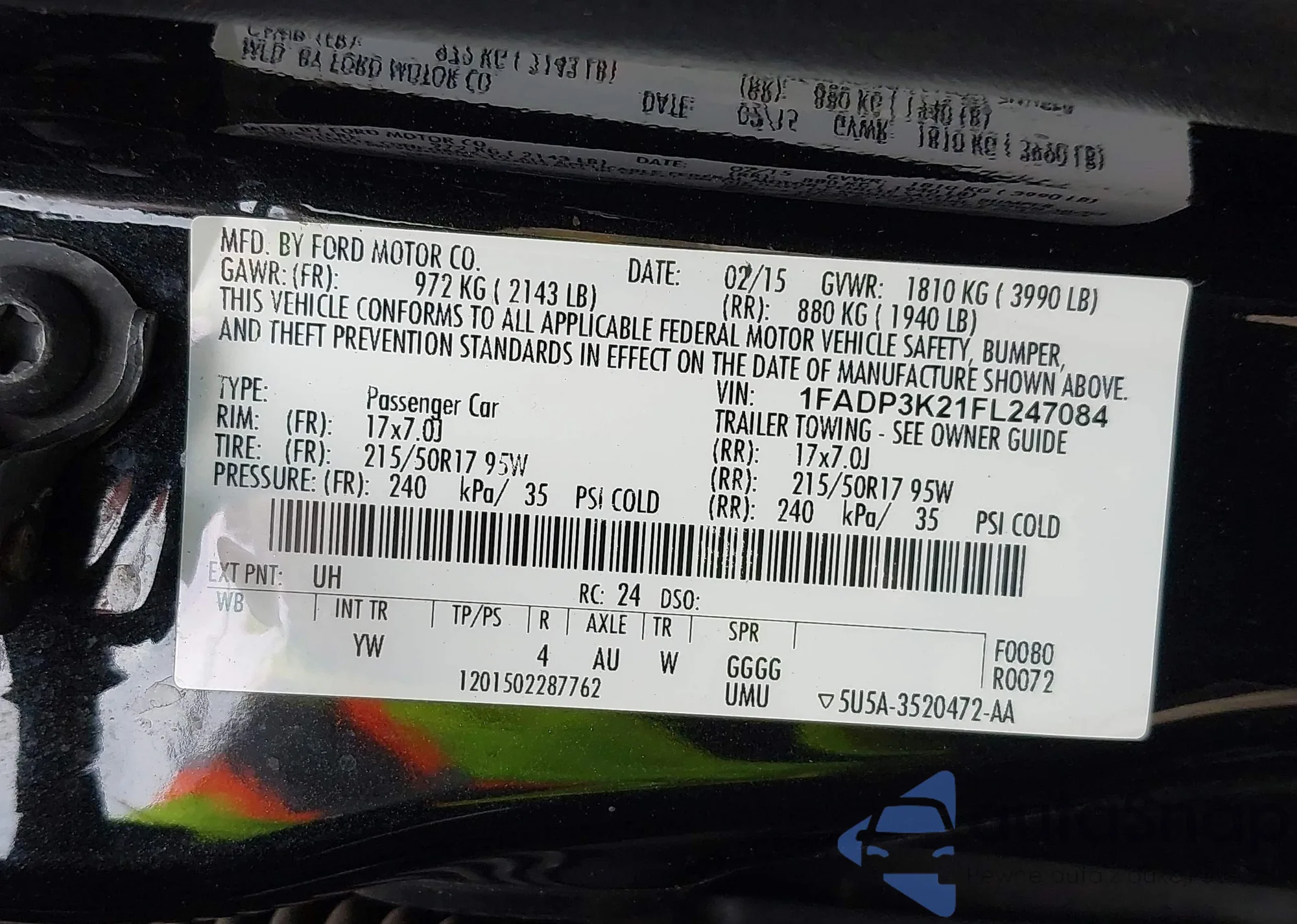 LOT: 43967157 VIN: 1FADP3K21FL247084