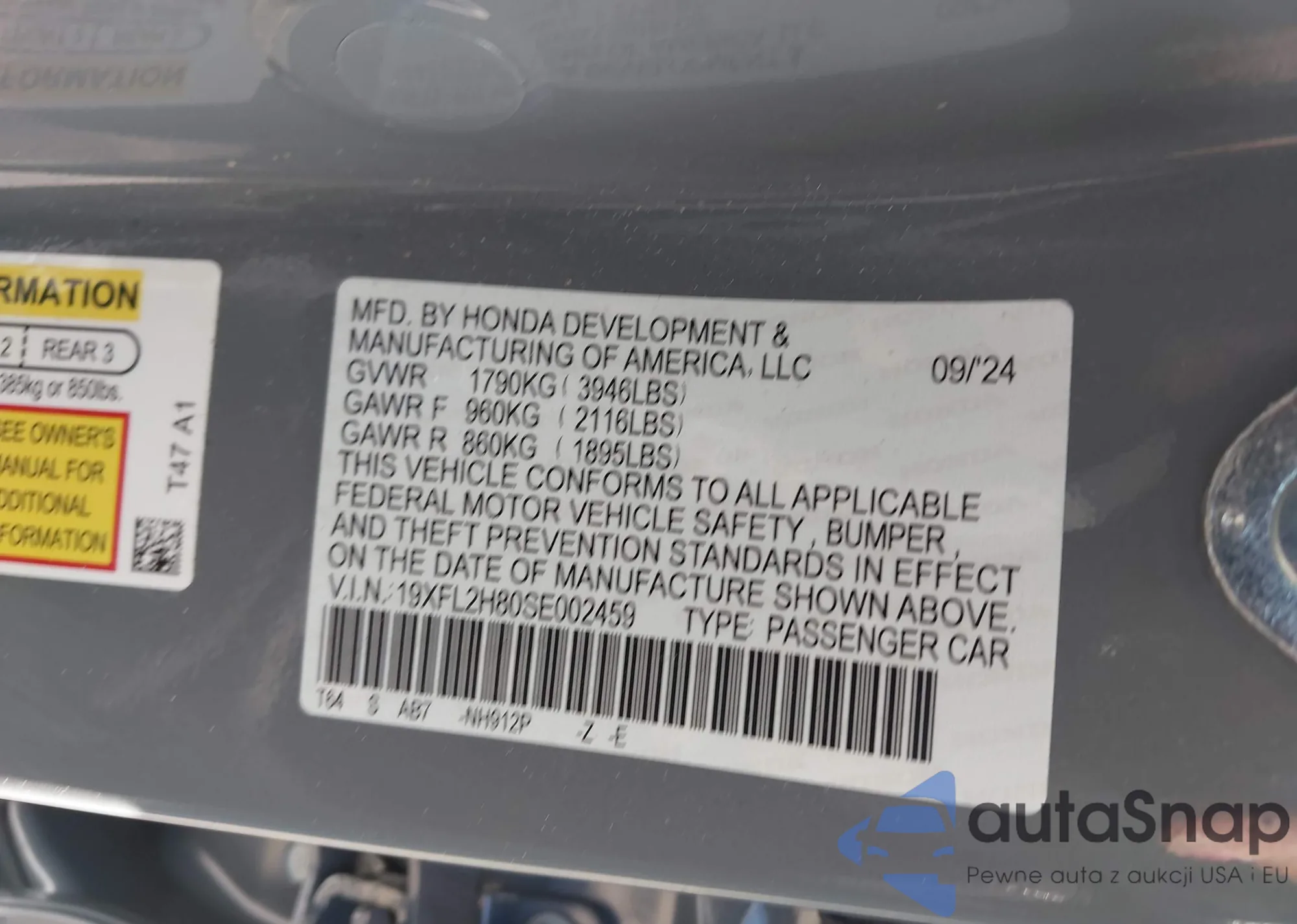 • VIN 19XFL2H80SE002459