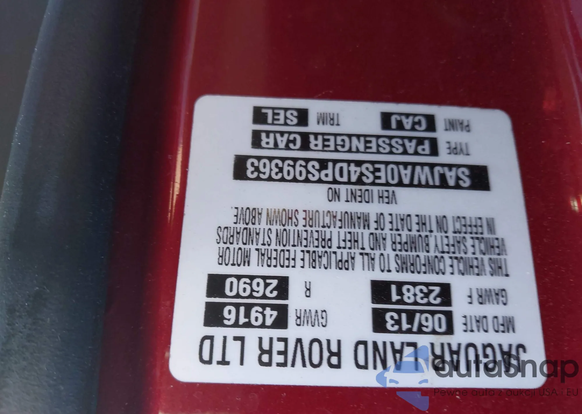 • VIN SAJWA0ES4DPS99363