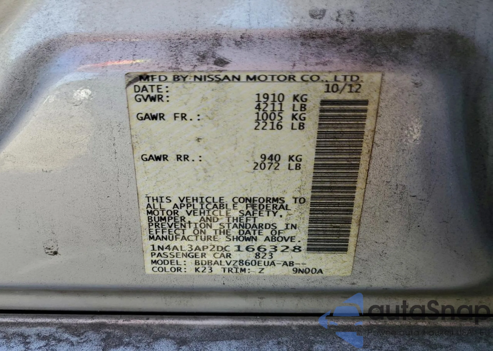 LOT: 94416065 VIN: 1N4AL3AP2DC166328
