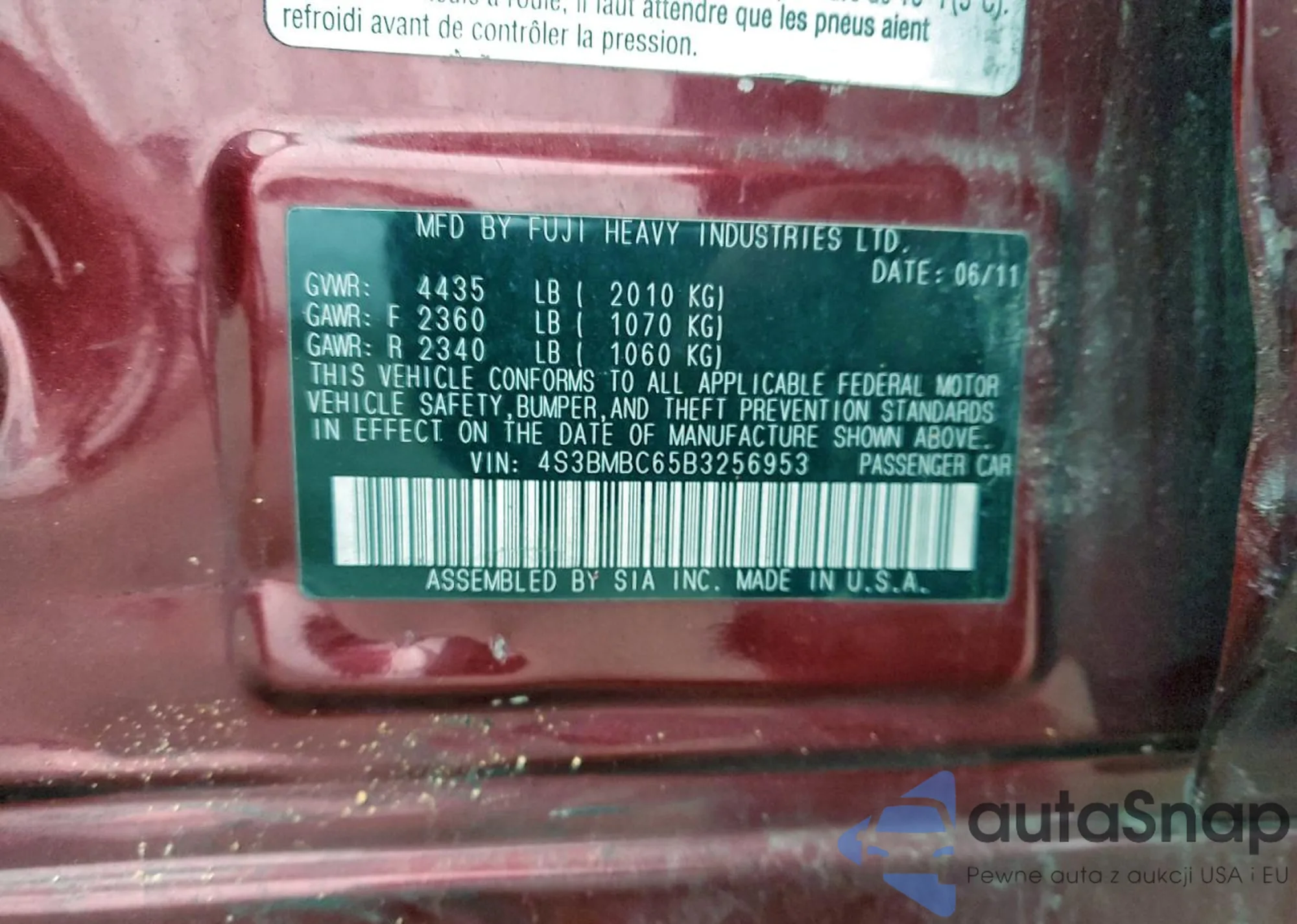 • VIN 4S3BMBC65B3256953