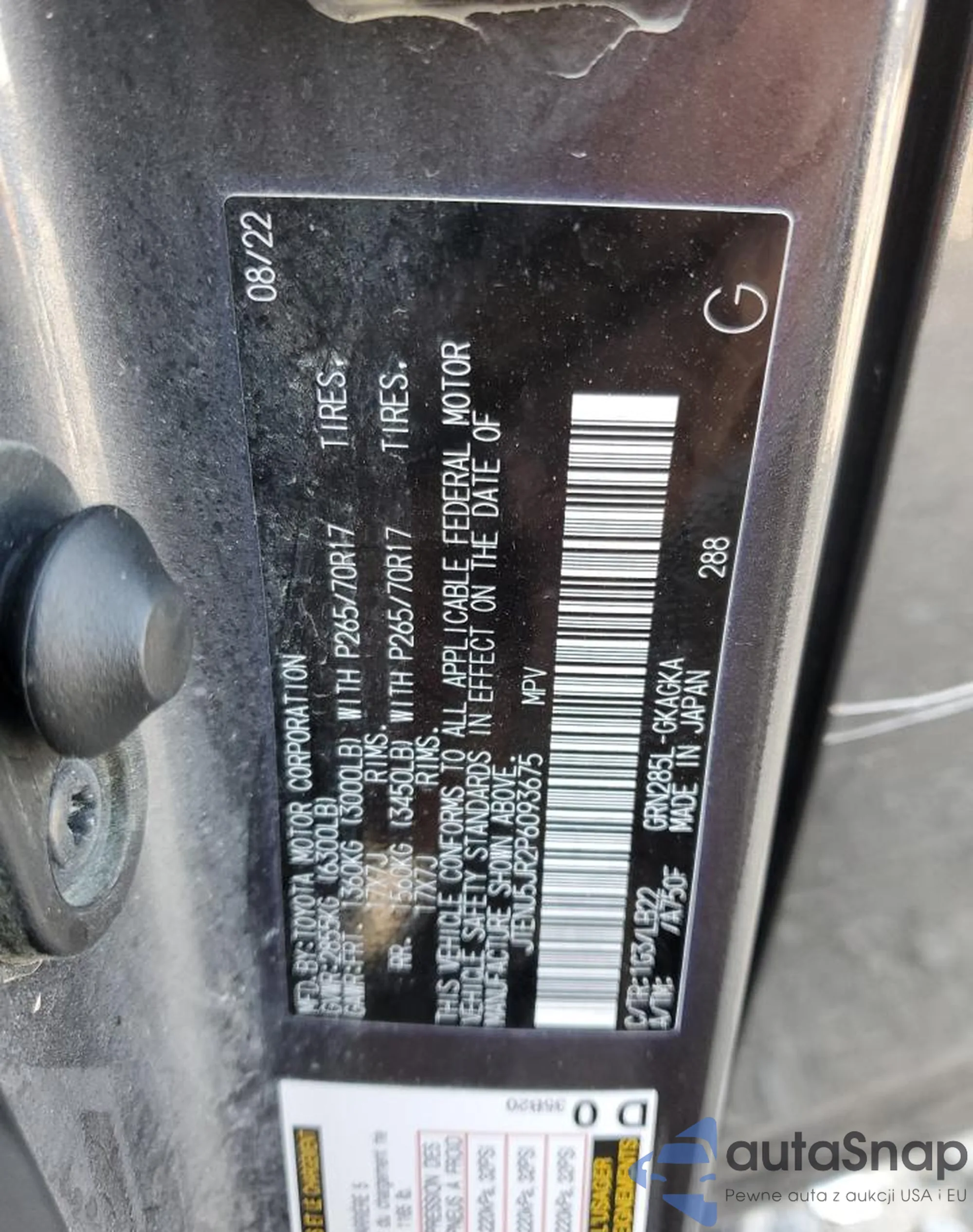 LOT: 59248315 VIN: JTENU5JR2P6093675