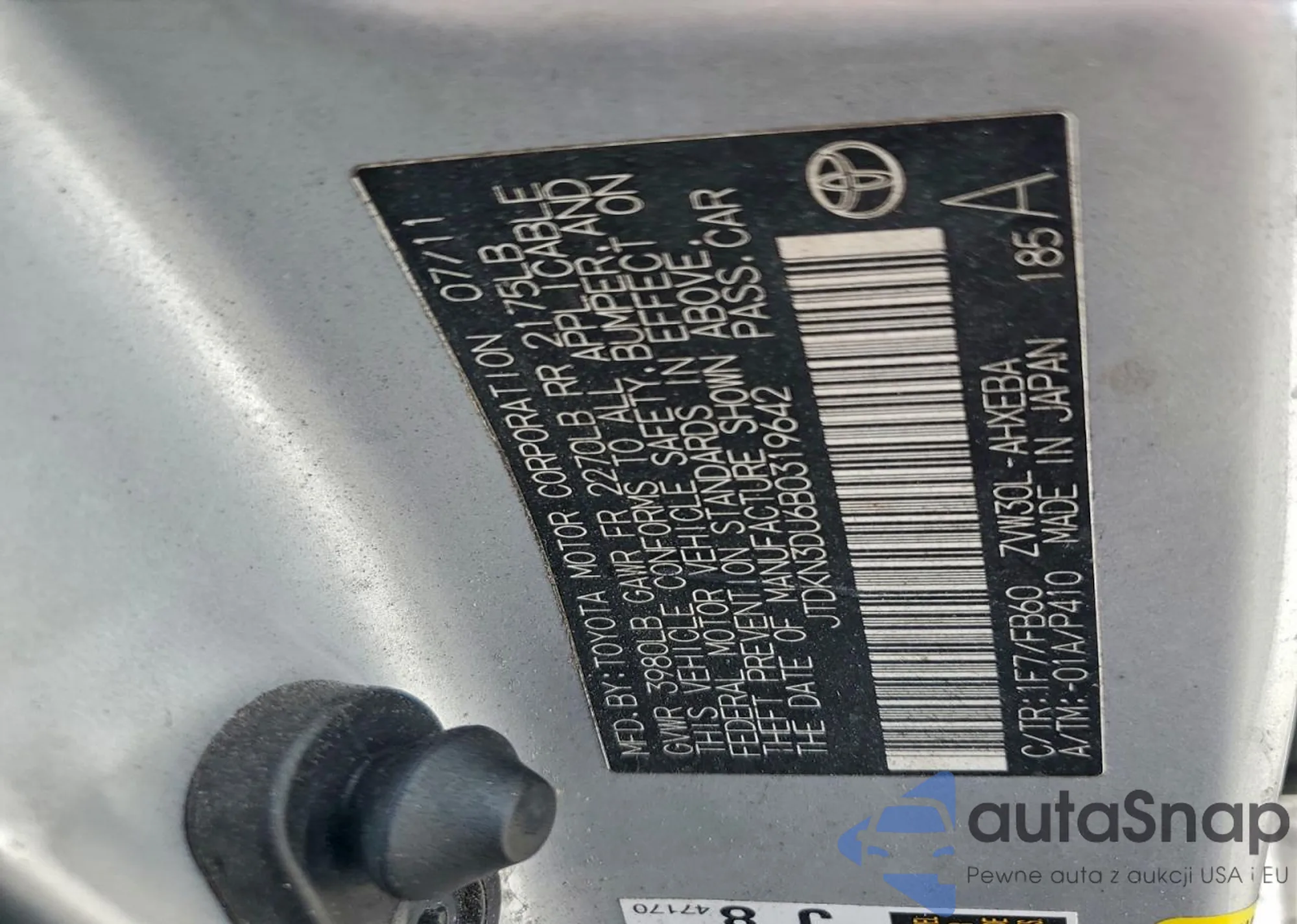 LOT: 94191865 VIN: JTDKN3DU6B0319642