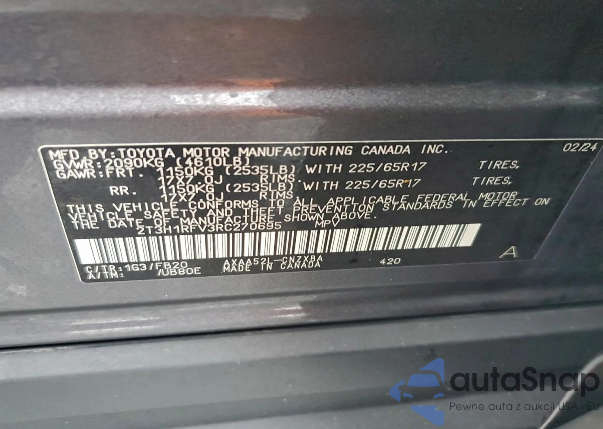 • VIN 4T1BF1FK6DU213776