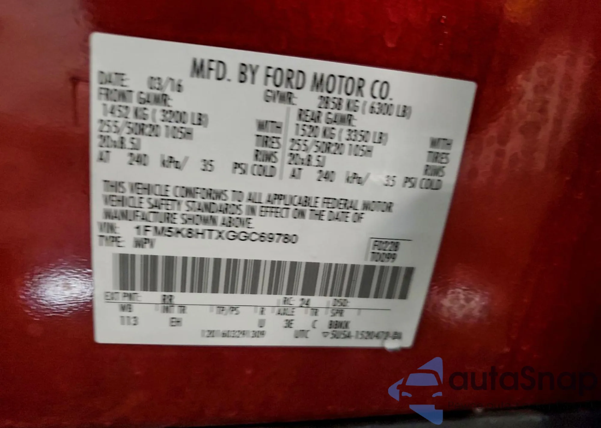• VIN 1FM5K8HTXGGC69780