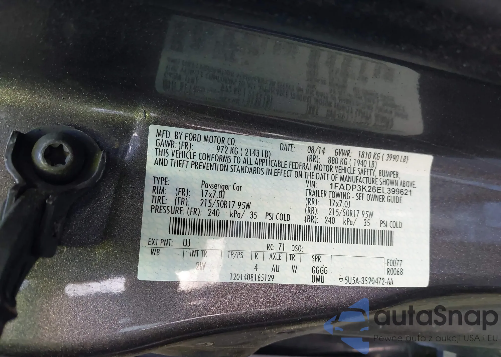 LOT: 43503085 VIN: 1FADP3K26EL399621