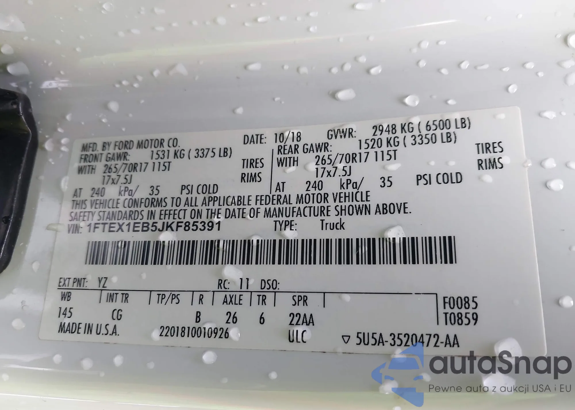 LOT: 43367812 VIN: 1G1RC6S50JU123861