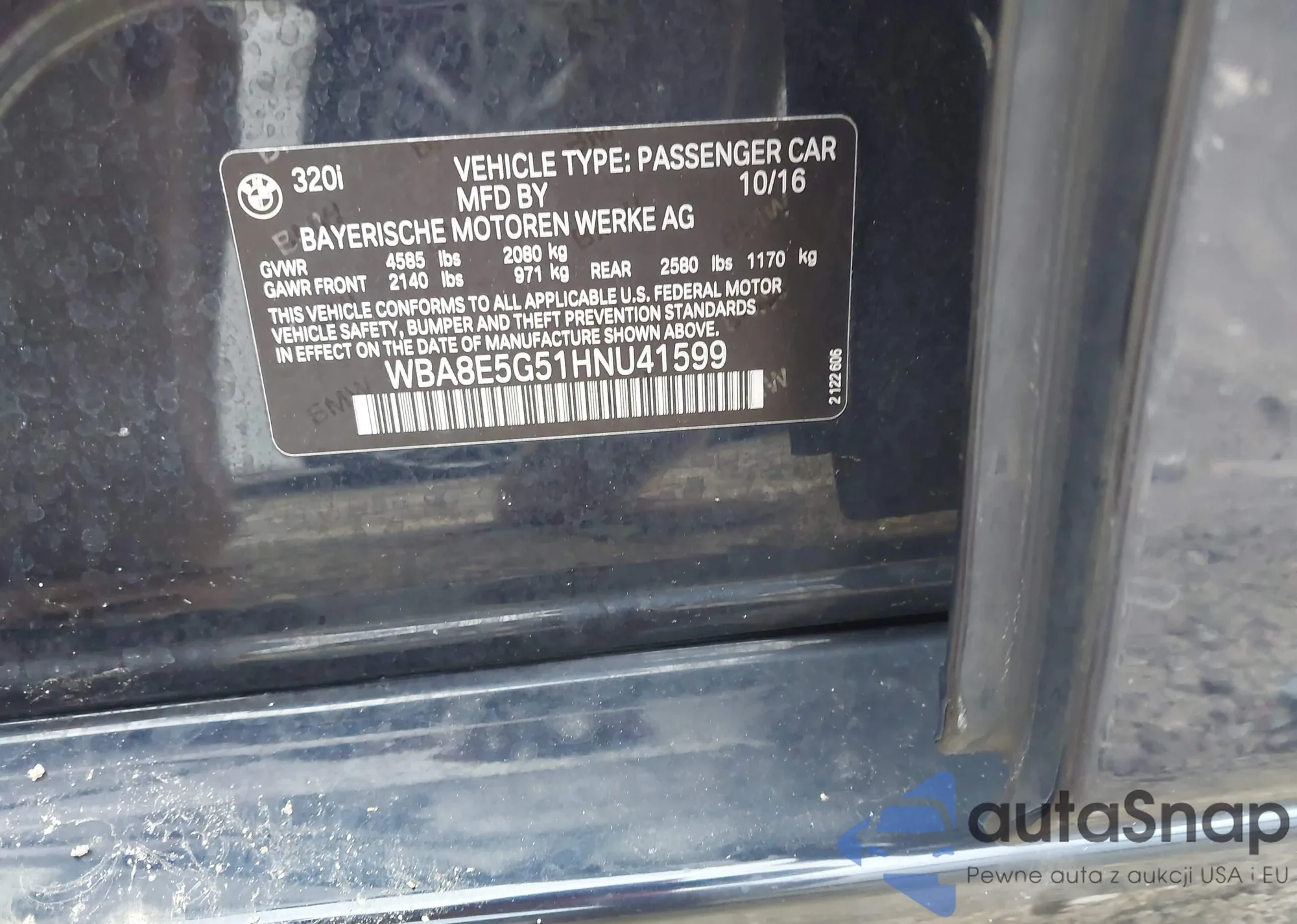 2017 BMW 320I xDrive from USA, damaged, VIN WBA8E5G51HNU41599
