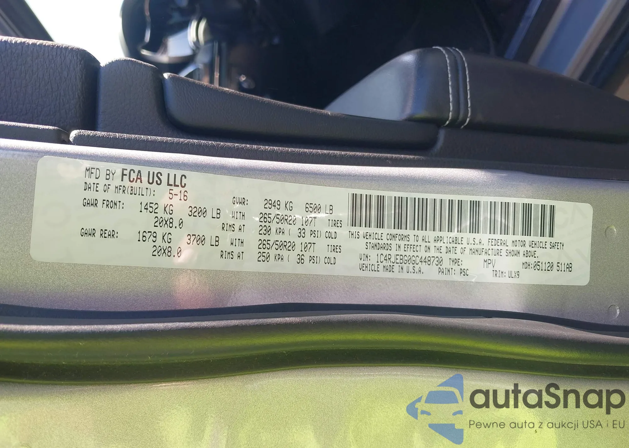 LOT: 43638792 VIN: 1C4RJEBG0GC448730