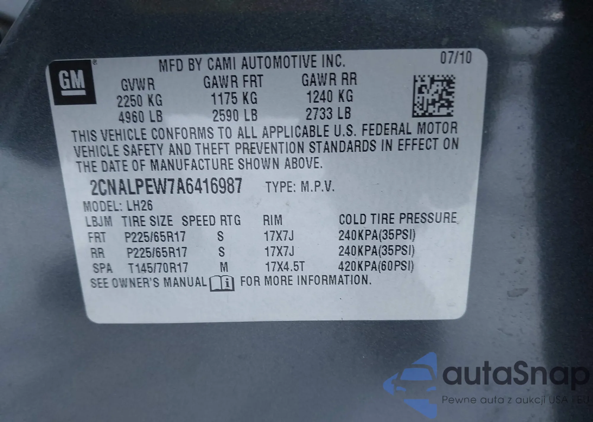 • VIN 2CNALPEW7A6416987