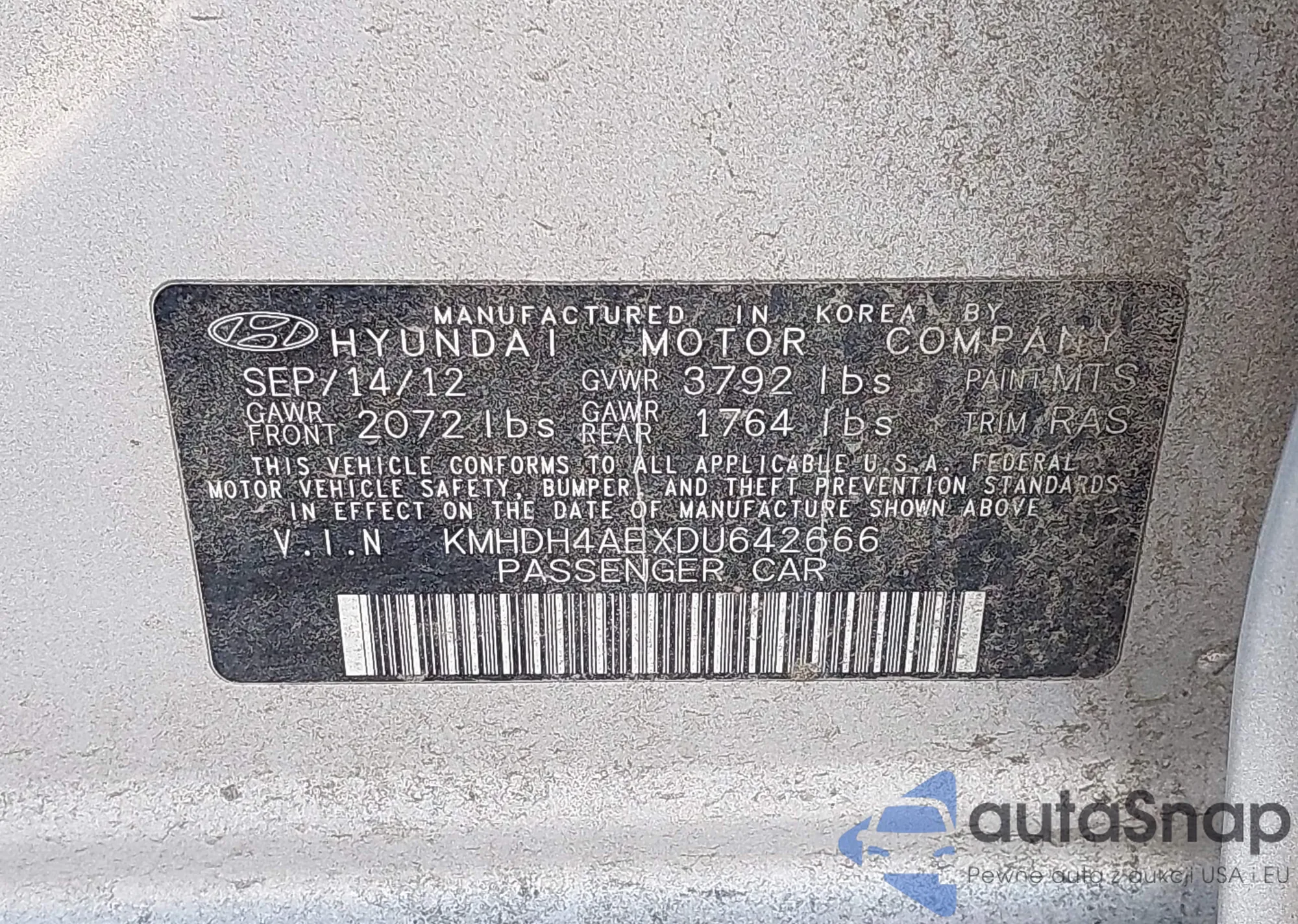 • VIN KMHDH4AEXDU642666
