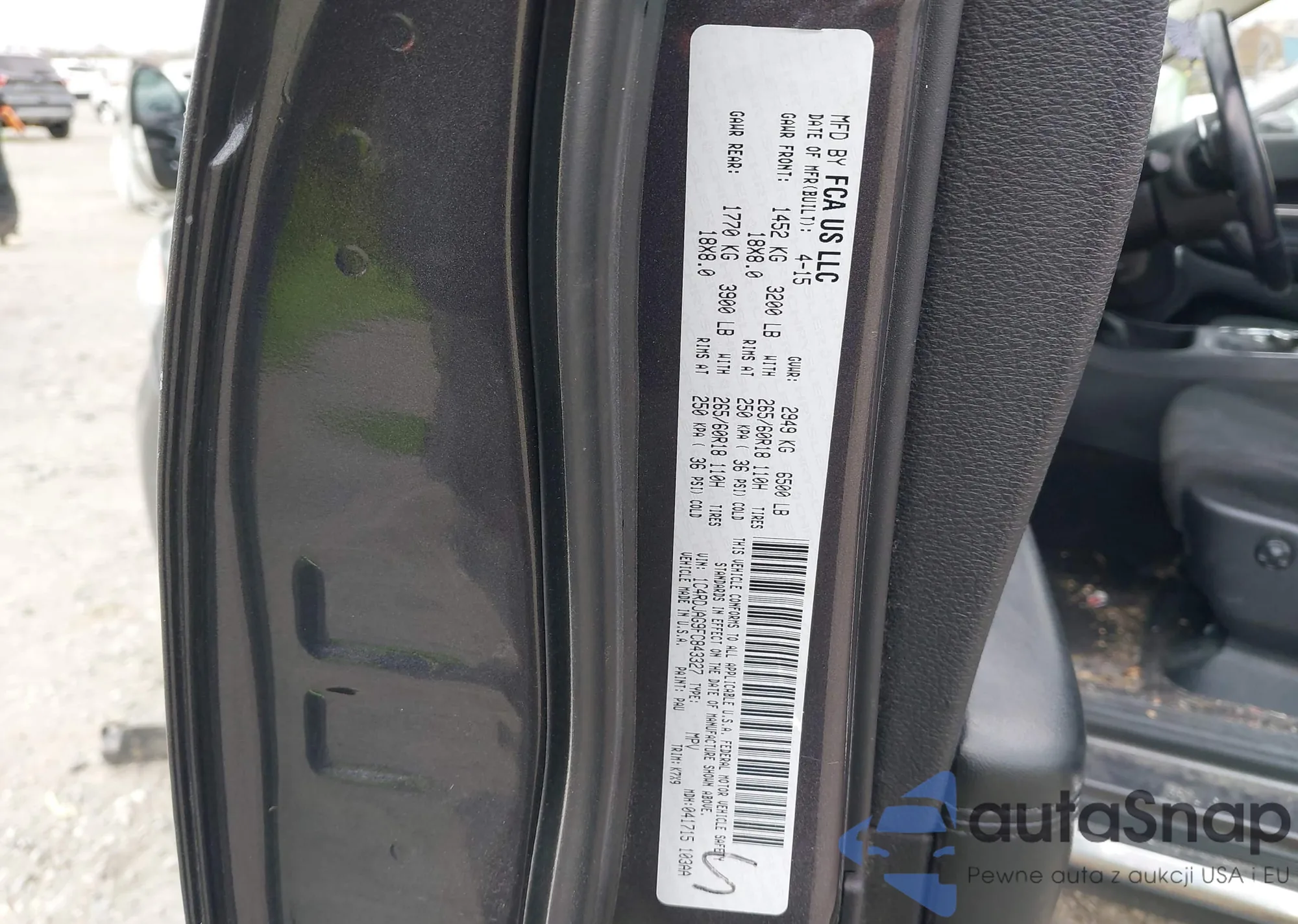 • VIN 1C4RDJAG9FC843327