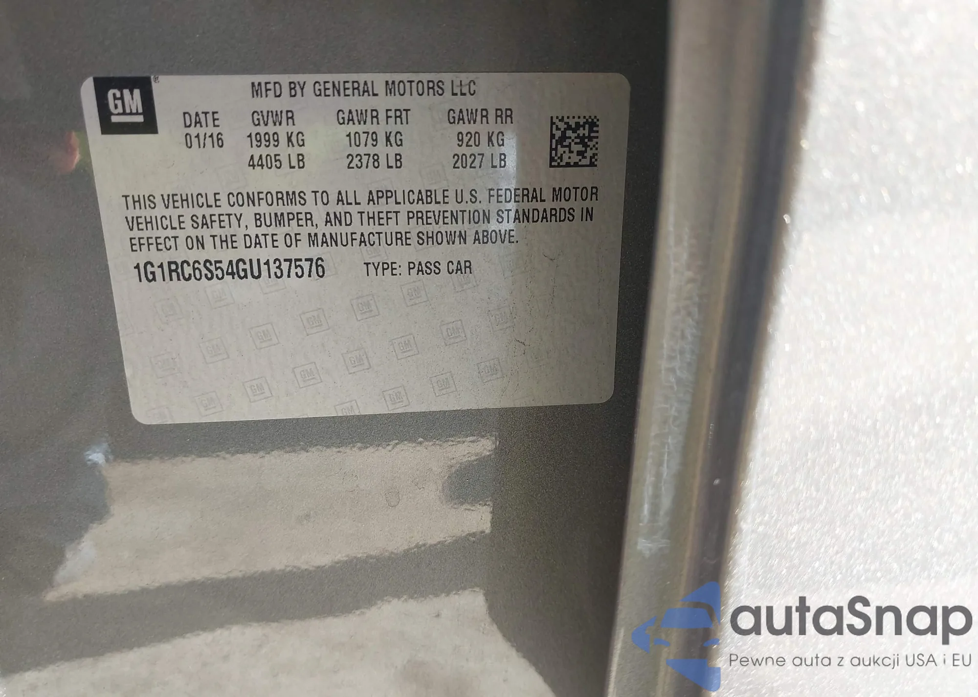 LOT: 43885328 VIN: 1G1RC6S54GU137576