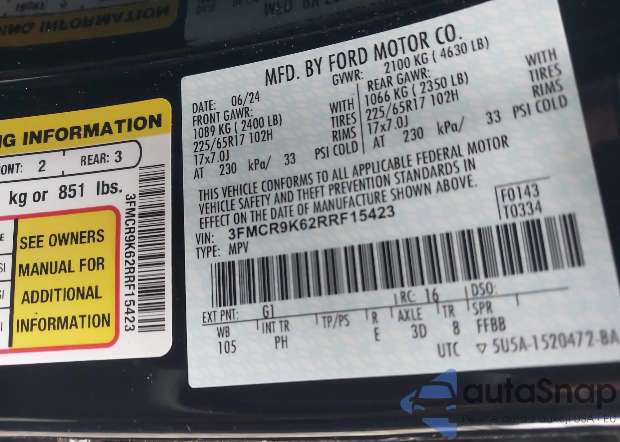 LOT: 43891707 VIN: 3FMCR9K62RRF15423