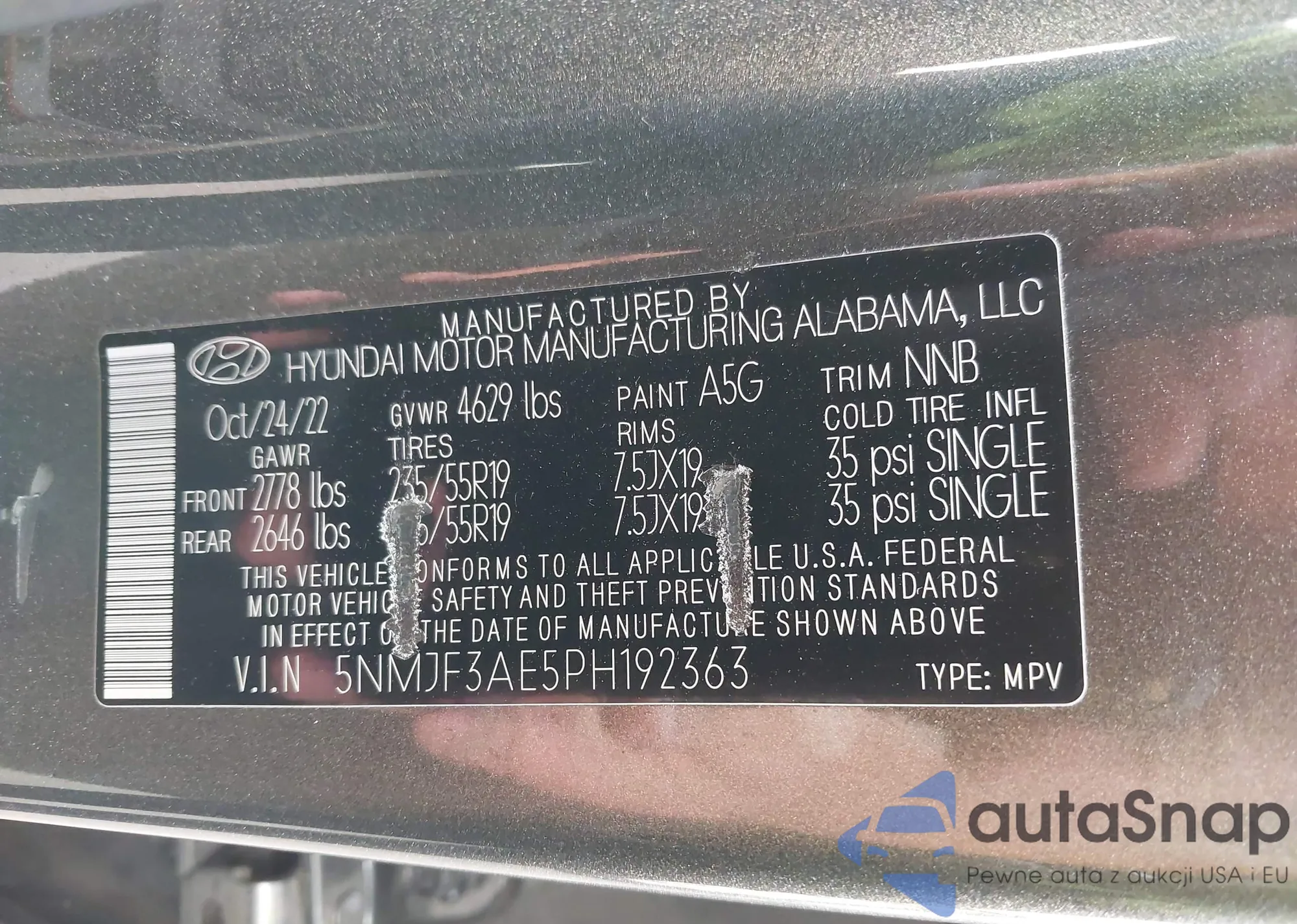 • VIN 5NMJF3AE5PH192363