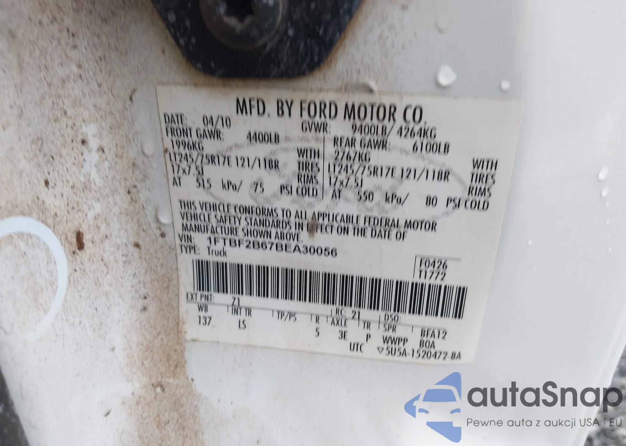 LOT: 43793454 VIN: 1FTBF2B67BEA30056
