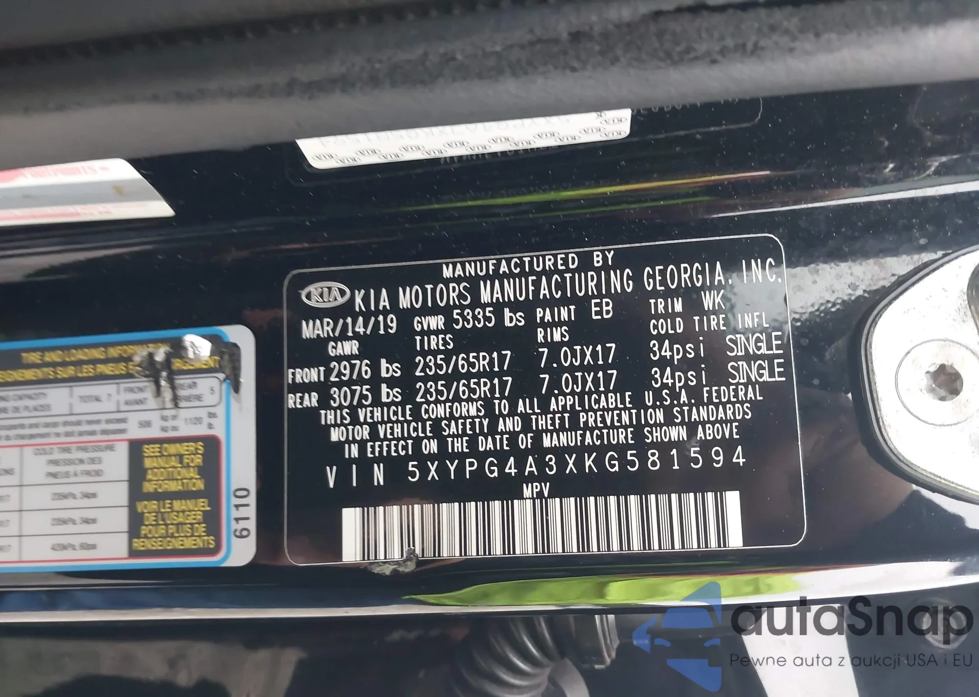 • VIN 5XYPG4A3XKG581594