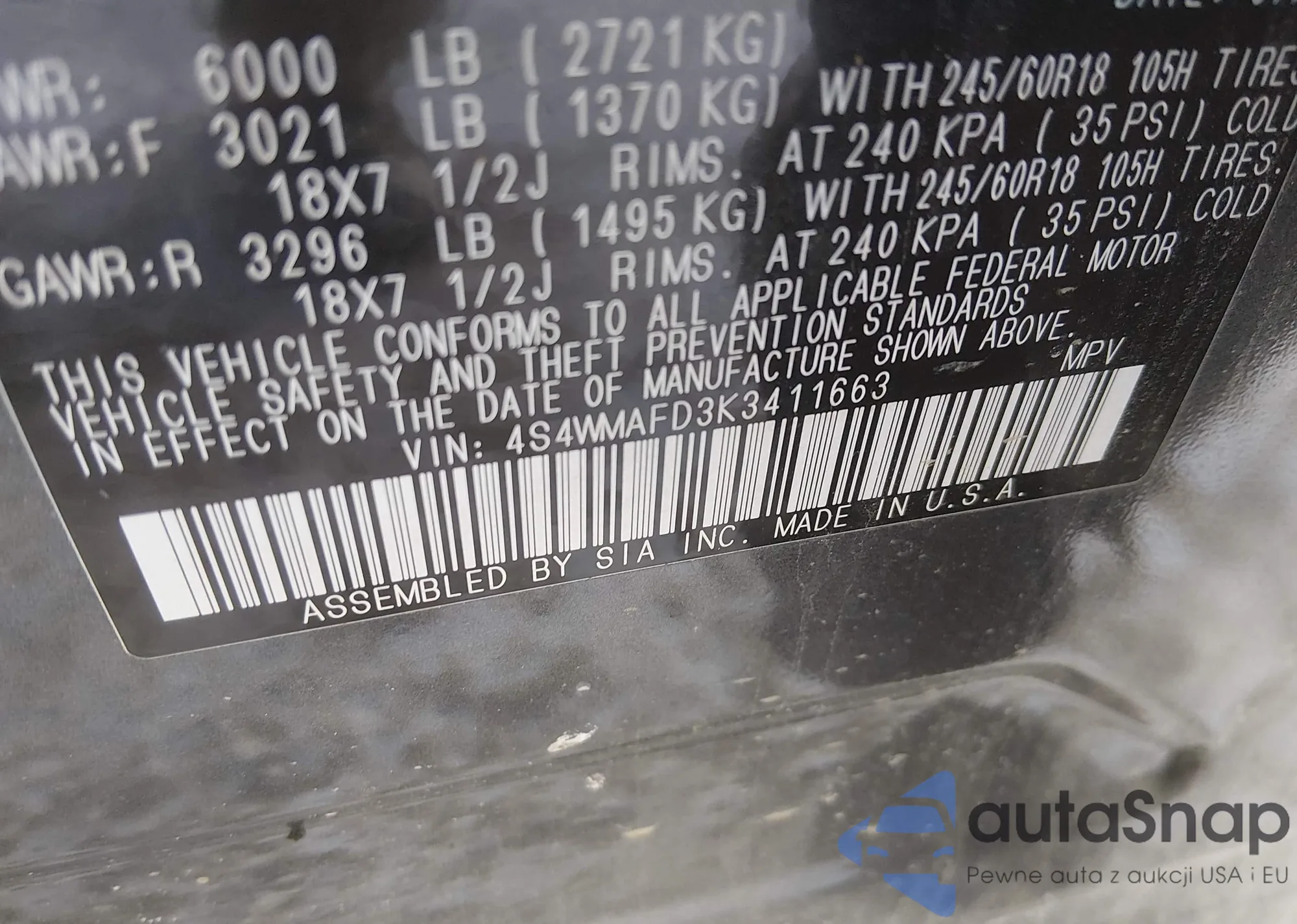 • VIN 4S4WMAFD3K3411663