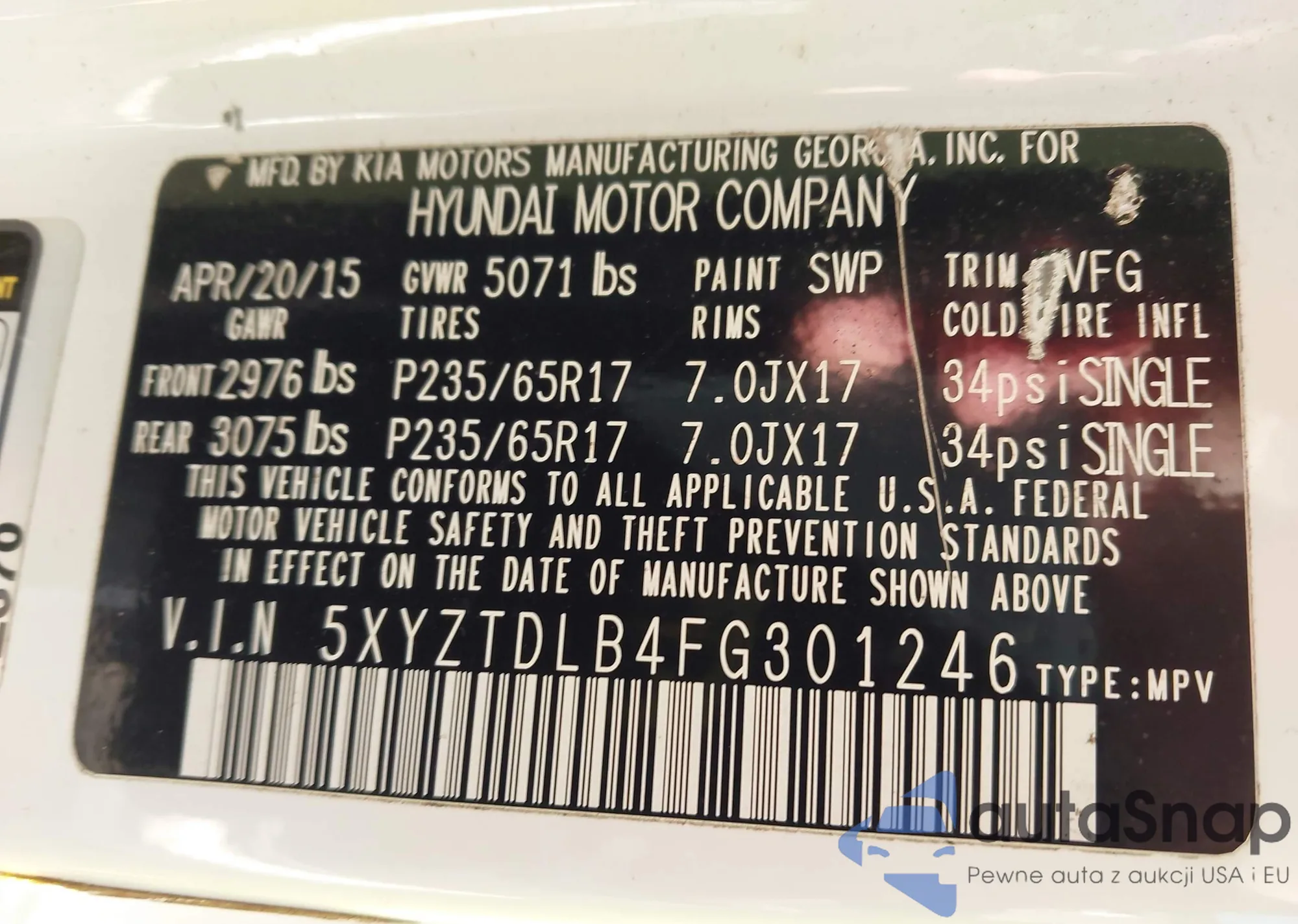 LOT: 43824319 VIN: 5NPE24AF3FH200523