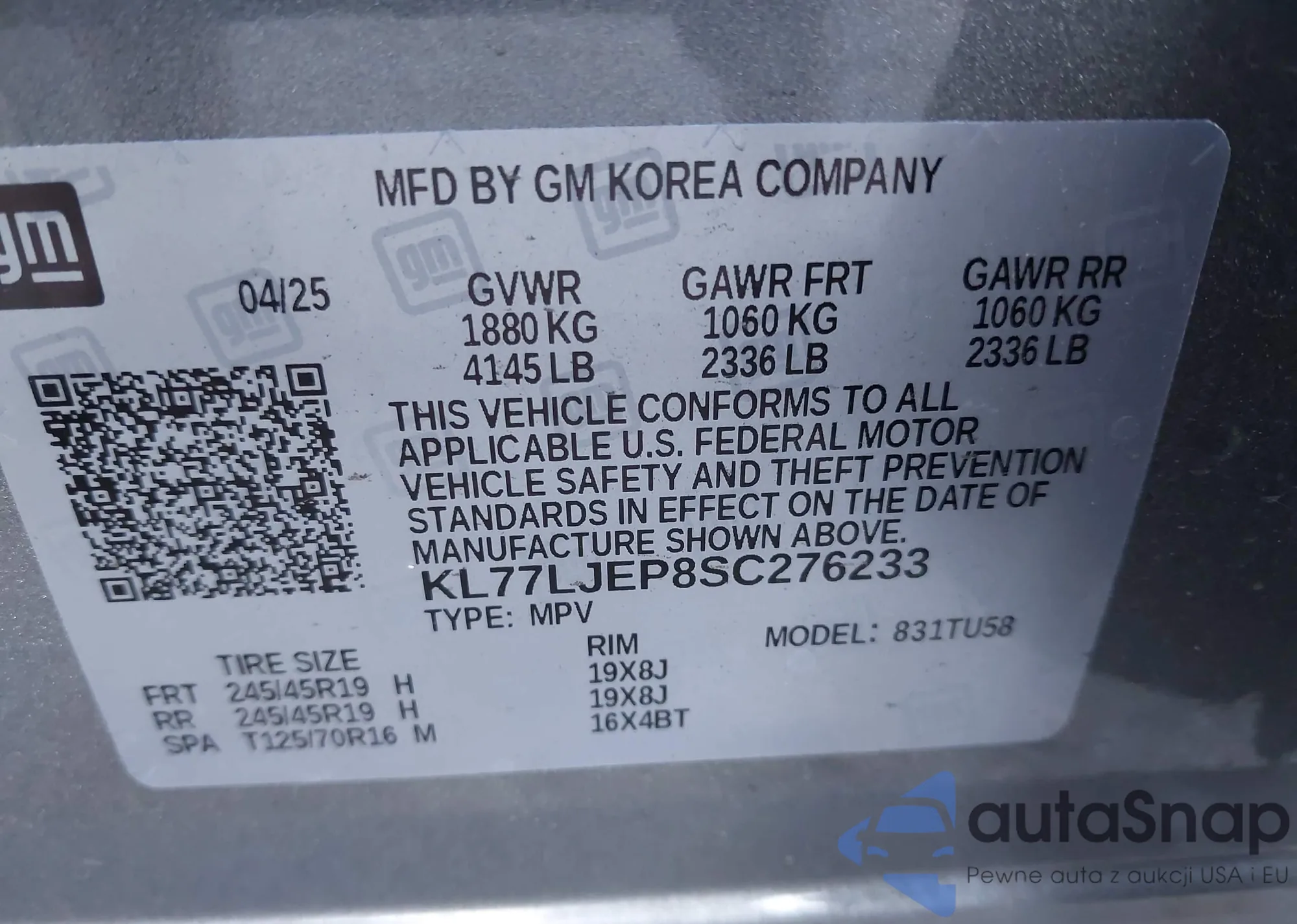 LOT: 43822566 VIN: KNALD124045018382