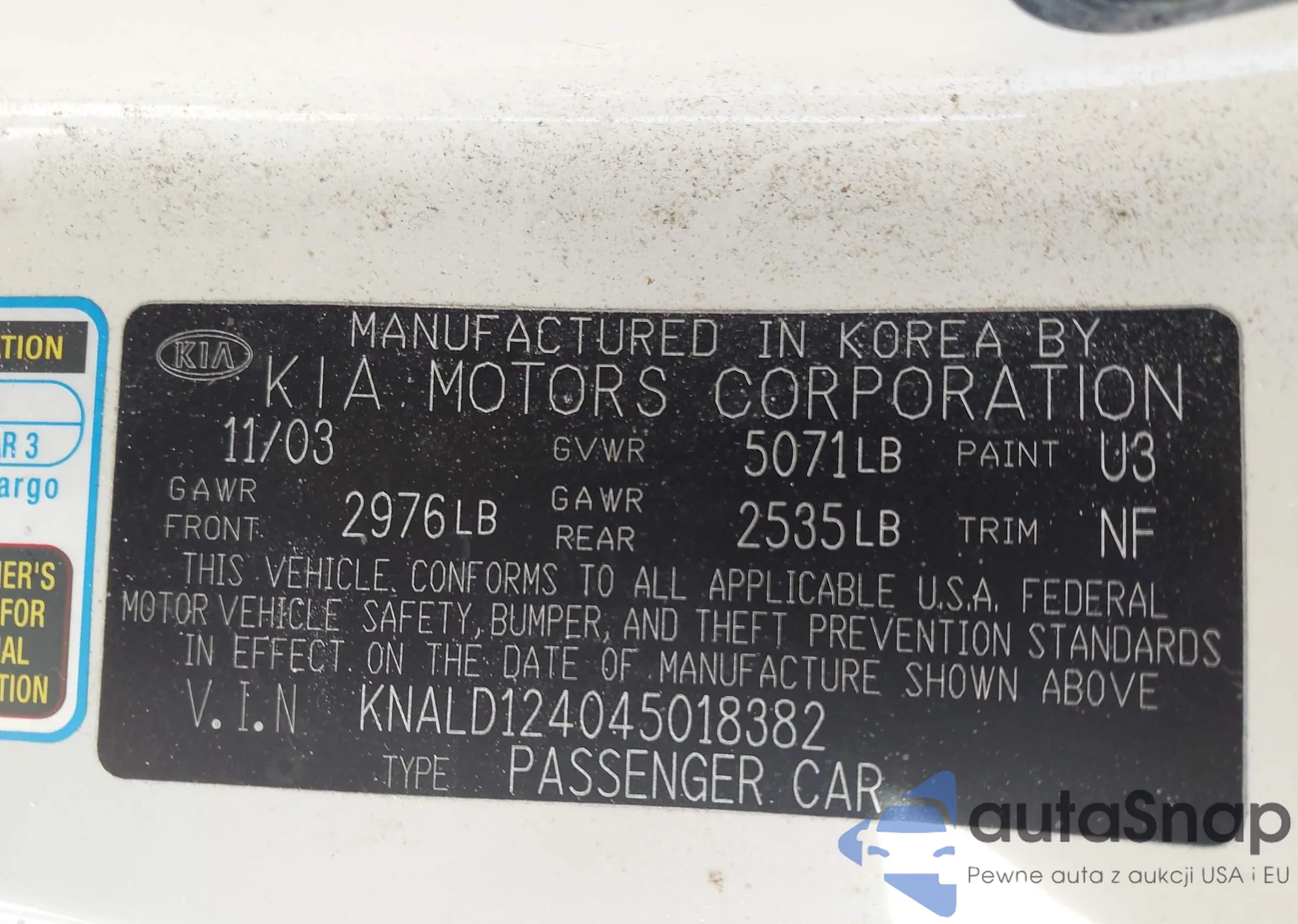 • VIN KNALD124045018382