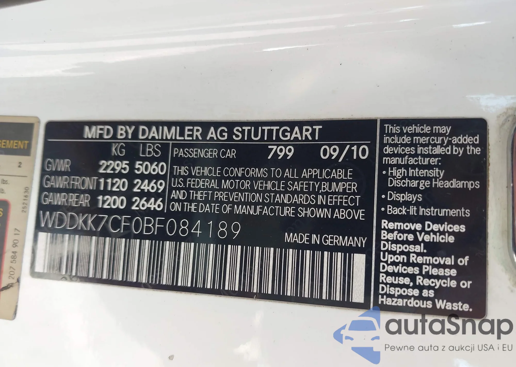 LOT: 43785929 VIN: WDDKK7CF0BF084189