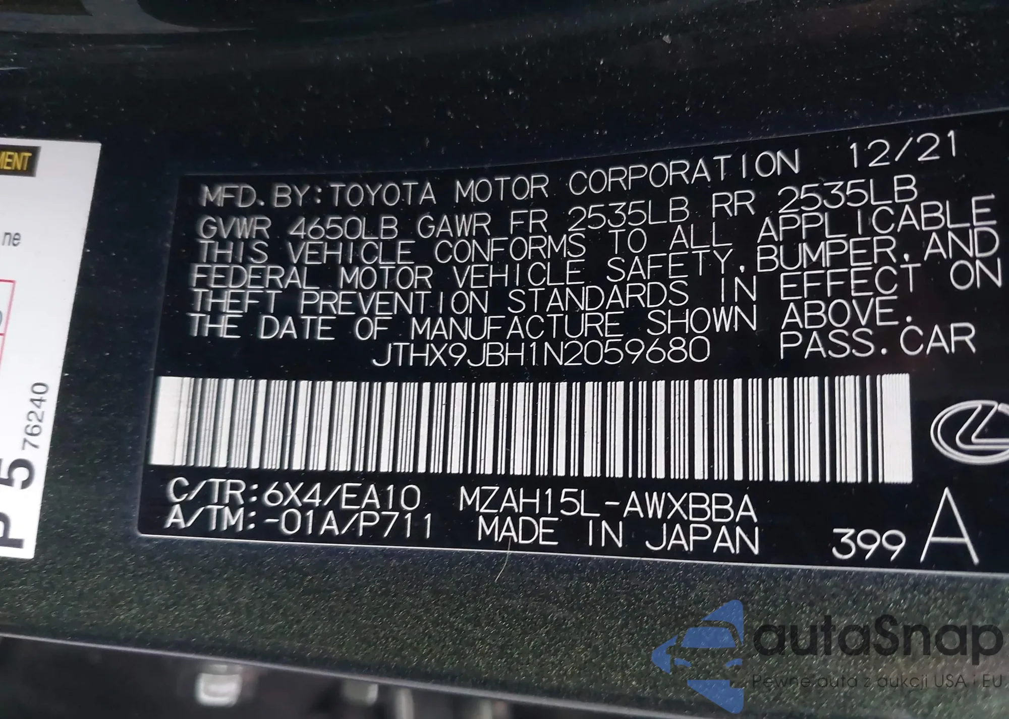 LOT: 43880323 VIN: JA4J24A50JZ071836