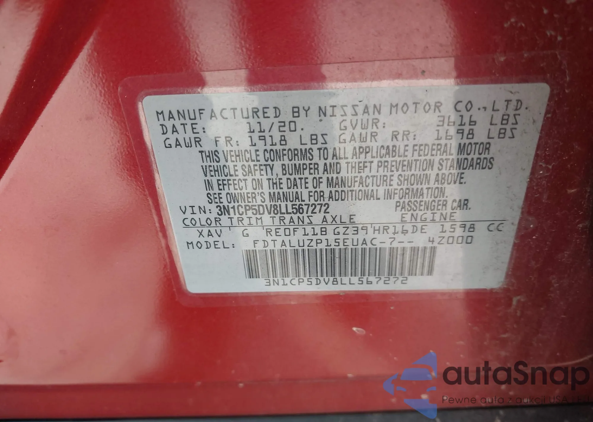 • VIN 3N1CP5DV8LL567272