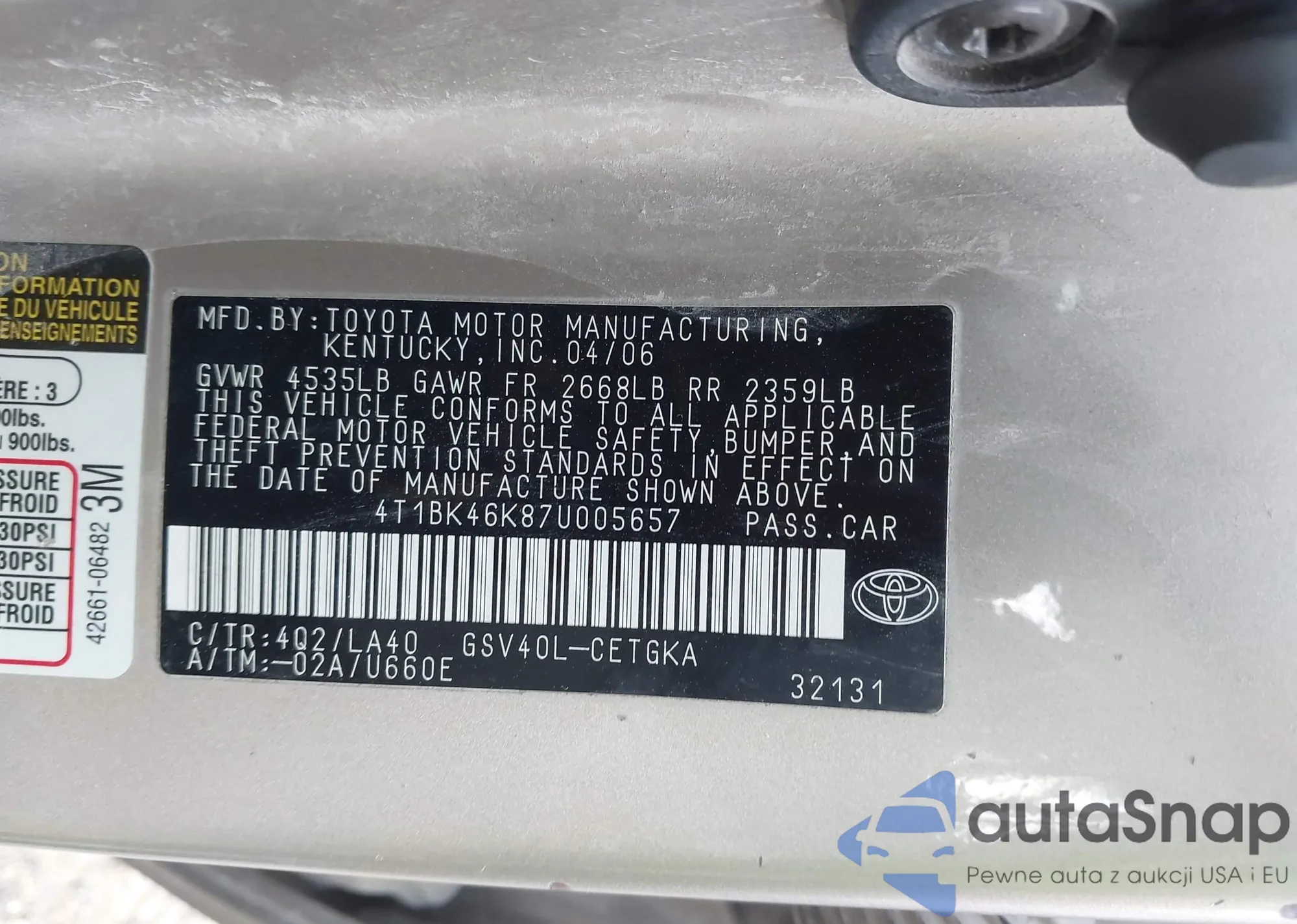 • VIN 4T1BK46K87U005657