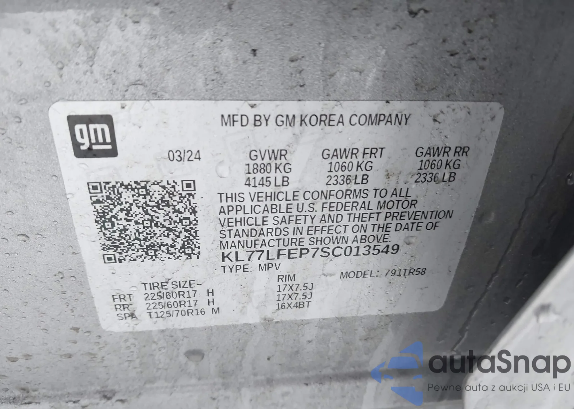 • VIN KL77LFEP7SC013549