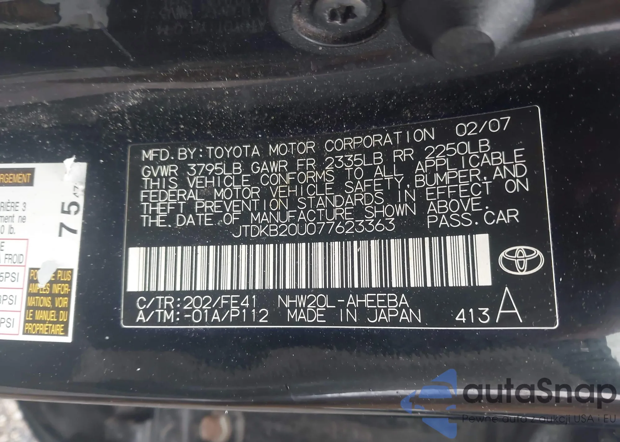 • VIN JTDKB20U077623363