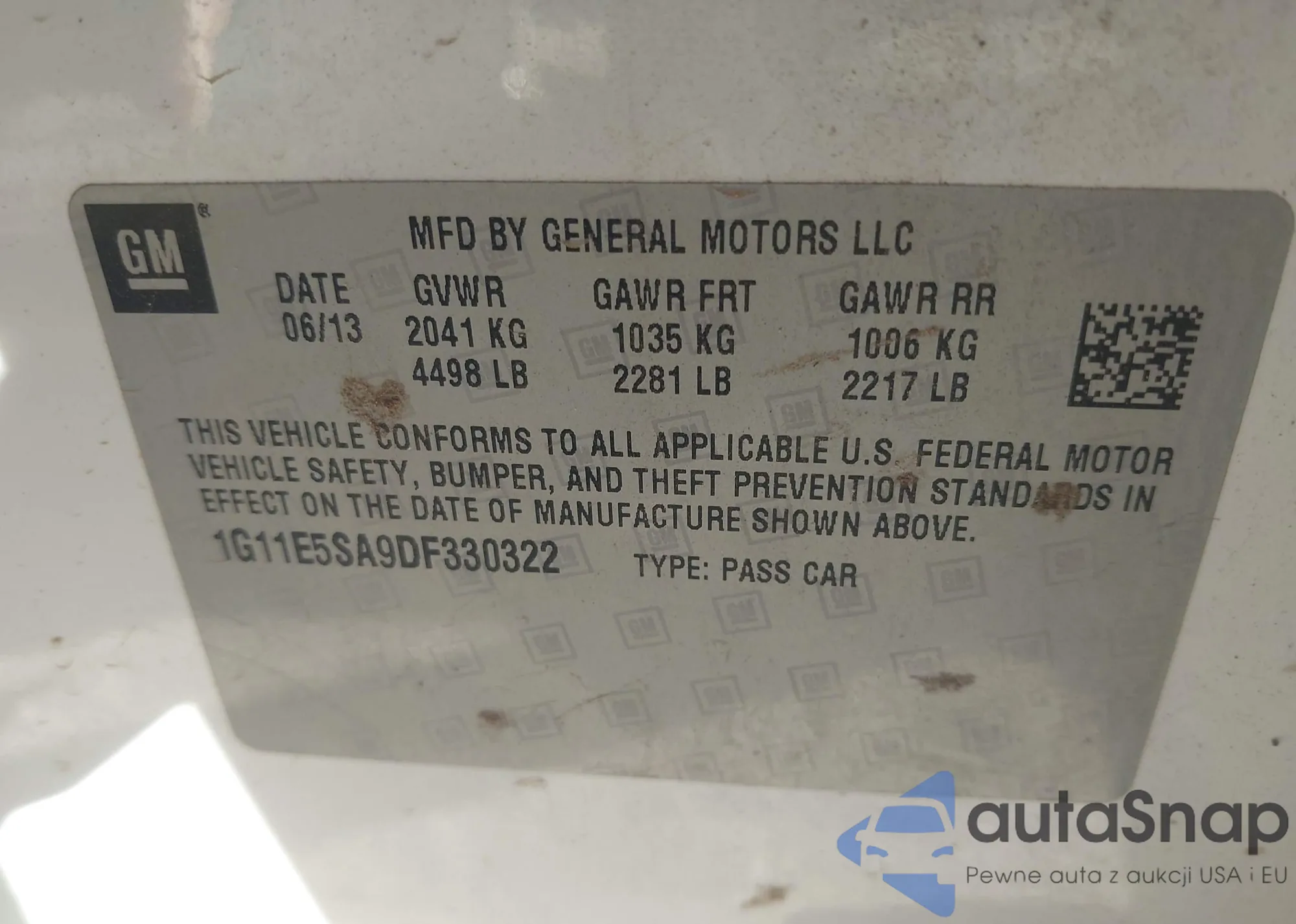 LOT: 43859734 VIN: 1G11E5SA9DF330322