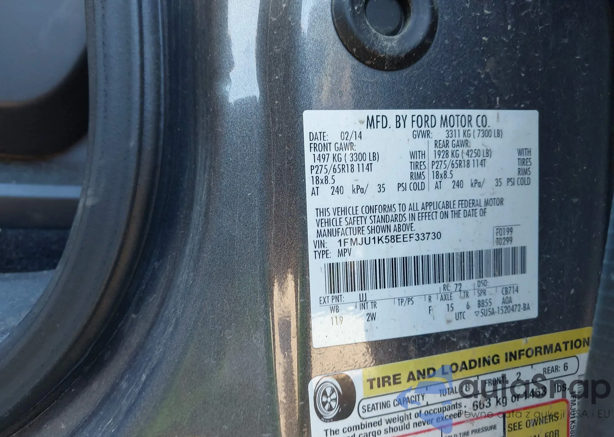 LOT: 43886656 VIN: 1FMJU1K58EEF33730