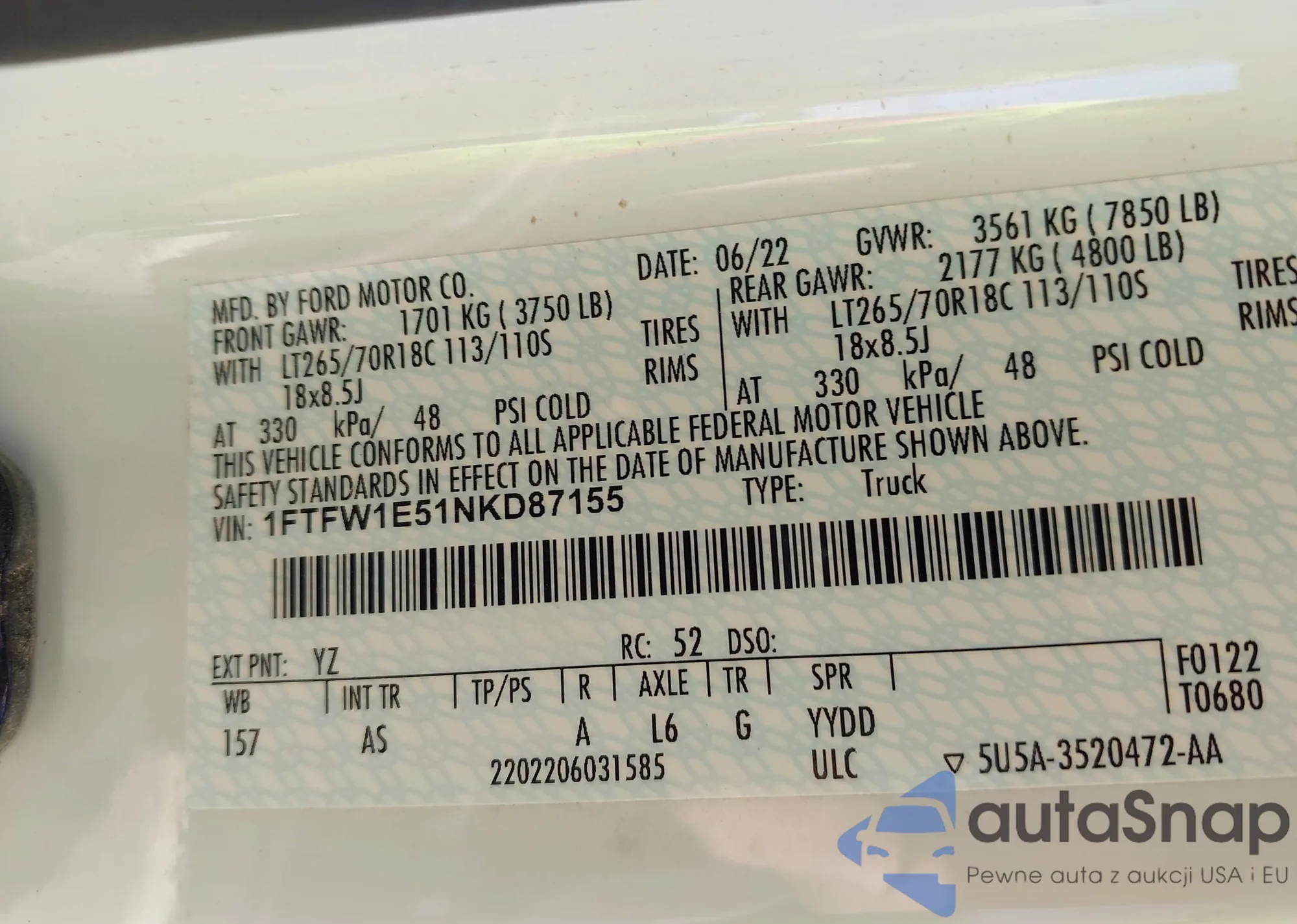• VIN 3KPF54AD8RE808072