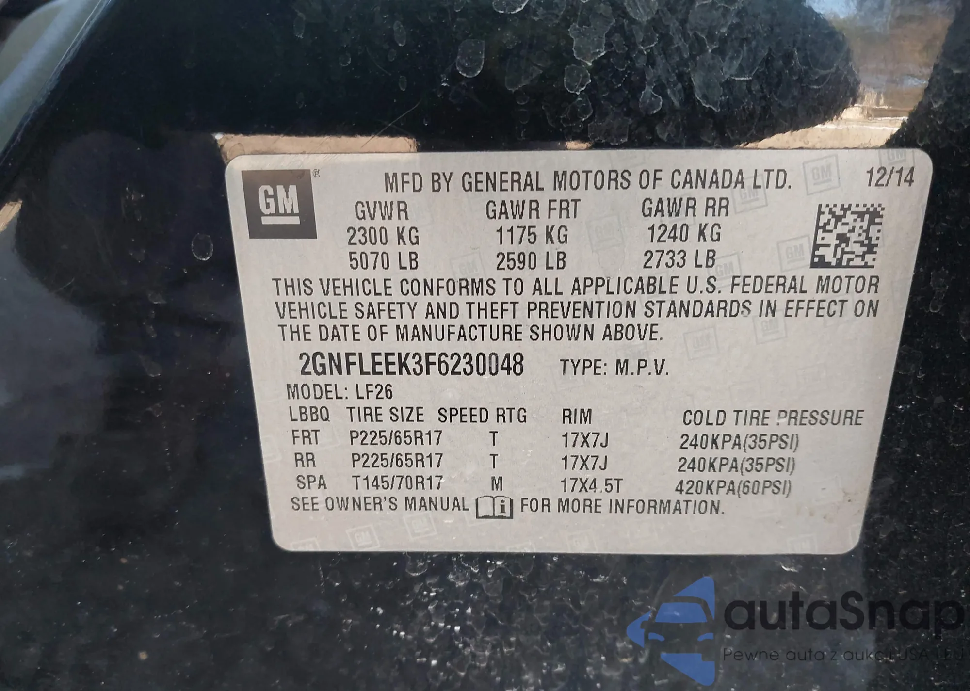 • VIN 2GNFLEEK3F6230048