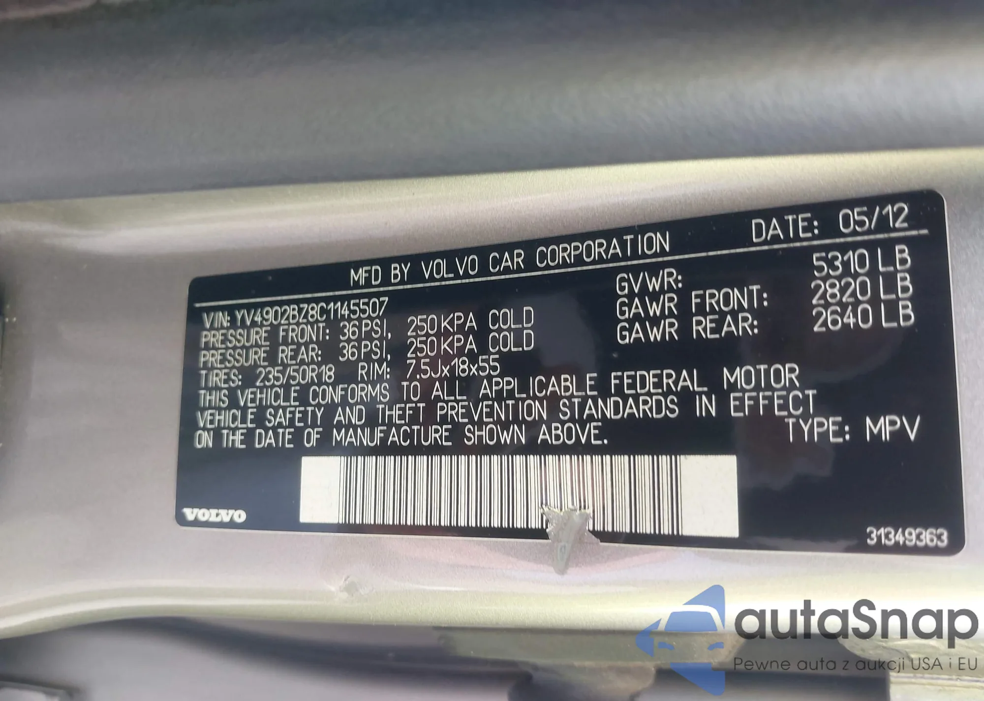 LOT: 43977256 VIN: 1GCWGFFA5C1102711
